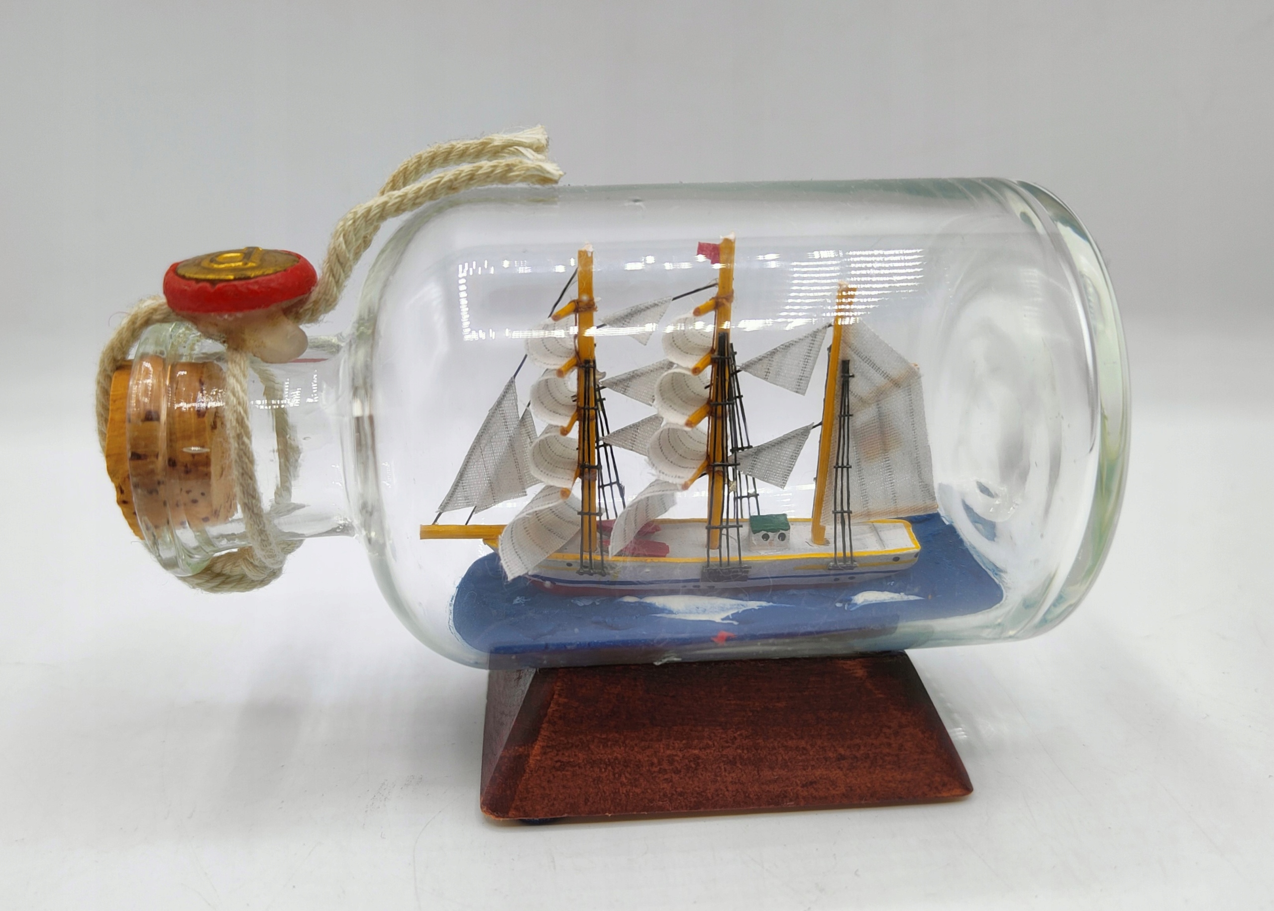 ŻAGLOWIEC w butelce 10cm, śliczny Wilhelmsburg