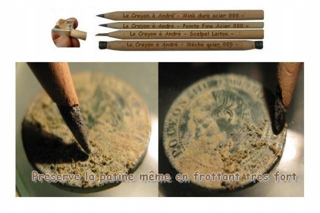 p >Предлагаемые карандаши специально разработаны для профессиональной чистки монет и других предметов, таких как пряжки, пуговицы, медали. Они сконструированы таким образом, чтобы их использование наносило как можно меньше вреда объекту.