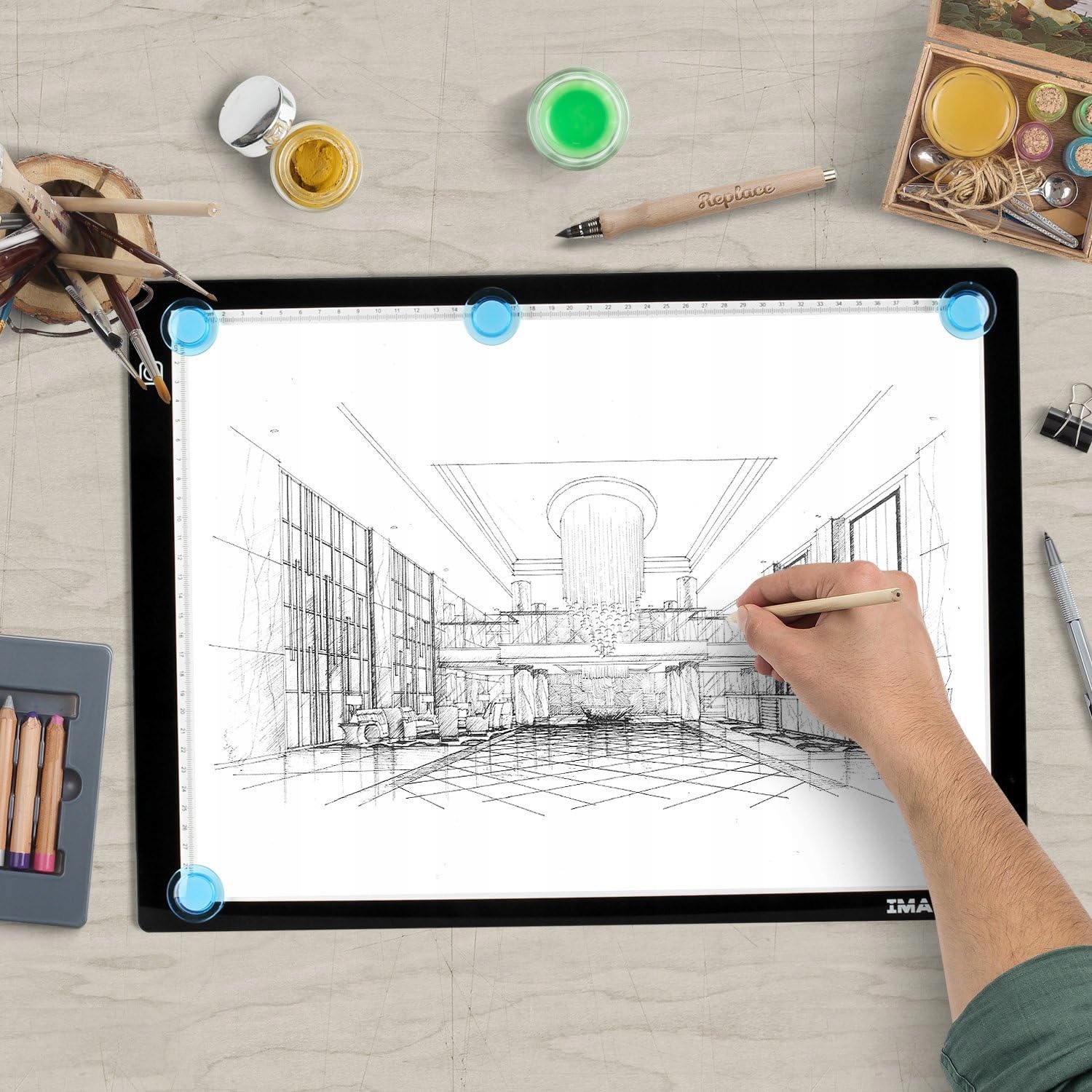 Сторонная таблица Agptek A2 - большая легкая прокладка, предназначенная для рисунка, живописи, 2D -анимации, каллиграфи, экструзии и татта. Благодаря равномерно размещенным светодиодам, стол освещает весь лист A2, обеспечивая превосходную видимость и точность работы. Bezstopniowa regulacja jasności za pomocą dotykowego przycisku umożliwia dostosowanie intensywności światła od 0% do 100% bez migotania, co chroni oczy podczas długotrwałego użytkowania. Ultra Thin Design минимизирует тепловой выпуск, обеспечивая комфорт и эффективность работы в течение длительного времени. arkusza