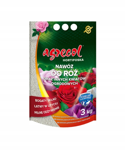 Удобрение «Хортифоска» для роз и других садовых цветов представляет собой гранулированное минеральное удобрение. Предназначен для удобрения всех сортов роз и других садовых цветов, таких как лилии, георгины, гладиолусы, пионы, нарциссы, тюльпаны и многие другие. Тип и количество ингредиентов, содержащихся в удобрении, соответствуют потребностям в питании вышеупомянутых растений, благодаря чему это удобрение влияет на их оптимальный рост, образование красивых бутонов, обильное цветение и правильный цвет листьев и цветов. Удобрение для розы Хортифоска можно использовать для растений, выращиваемых в грунте и под прикрытием.
