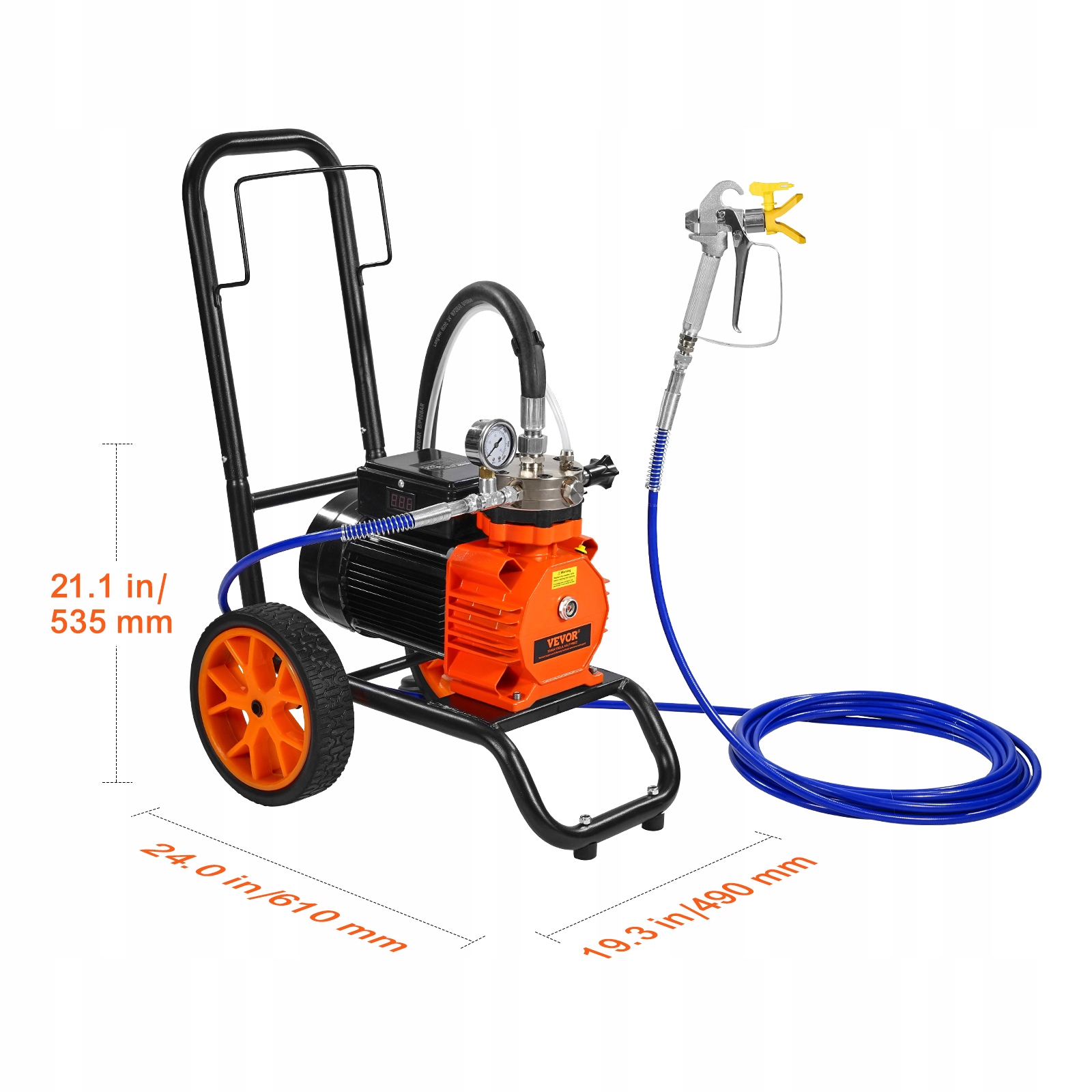 Высокопроизводительное распыление: оснащено мощным двигателем с 1100 Вт, прямой агрегат с распылением с тележкой обеспечивает давление до 2000 фунтов на квадратный дюйм и быстро покрывает большие площади. С максимальным потоком 2,0 л/мин он обеспечивает непрерывное и даже нанесение краски, что делает ее в 5 раз быстрее, чем катятся и в 12 раз быстрее, чем чистка - идеально подходит для среднего и высокого распыления. относительно толщины слоя. В случае больших площадей следует использовать более низкие скорости для снижения потребления краски.