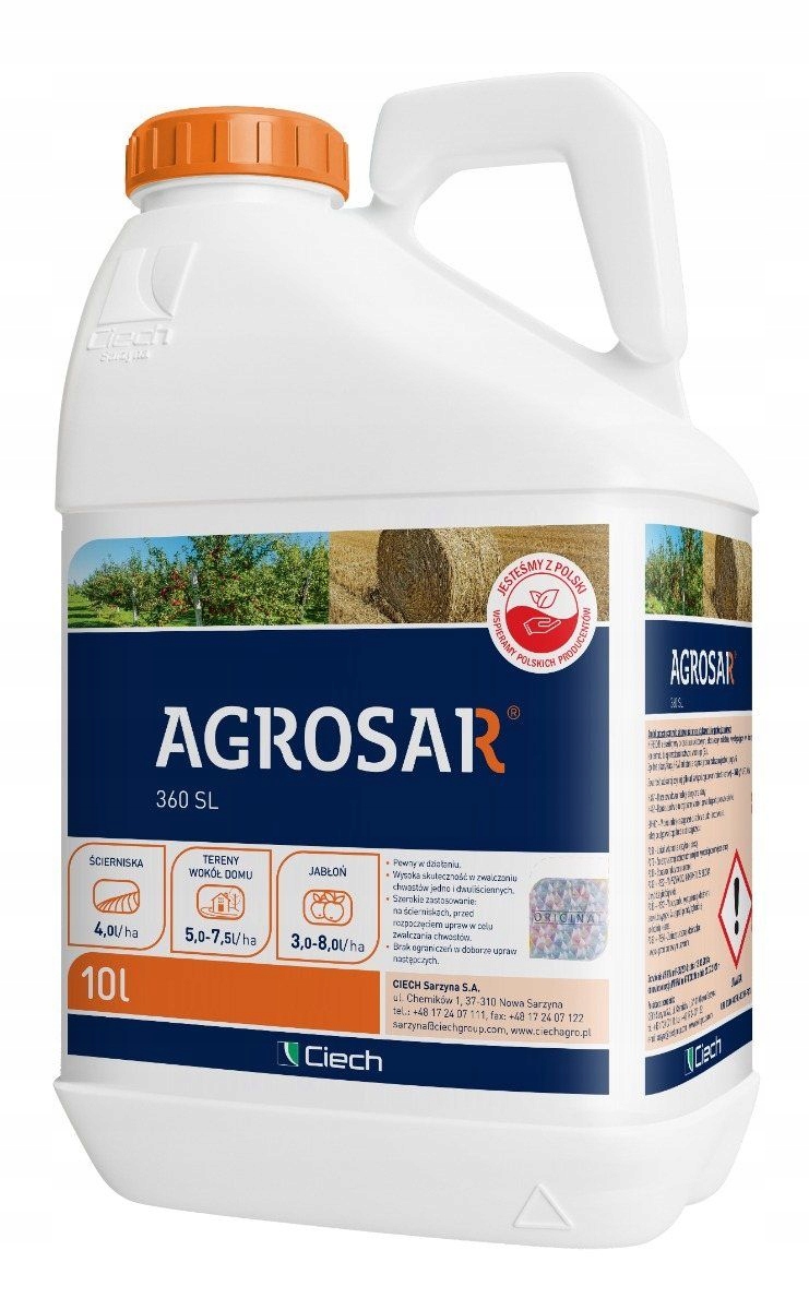Агросар 360 СЛ — гербицид в виде концентрата для приготовления водного раствора, применяемый по листьям, предназначенный для борьбы с пыреем и другими однодольными и двудольными сорняками (однолетними и многолетними) при выращивании яблони, груши, вишни. , сливы, персиковые и абрикосовые деревья., крыжовник, черноплодная рябина, черная смородина, смородина. Смородина красная, смородина белая, в садах, на приусадебных участках, придомовых территориях, вдоль заборов и подъездных путей. Средство предназначено для использования с ручными распылителями. Агросар 360 SL – внекорневой гербицид системного действия. Он захватывается зелеными частями растений (листьями, зелеными побегами и неодревесневшей корой), а затем перемещается по растению и достигает его подземных частей (корней, столонов и др.), вызывая их отмирание. Первые симптомы действия средства (пожелтение и увядание) видны через 7-10 дней после обработки. Растения полностью погибают через 2-3 недели. Высокая температура и влажность воздуха, сильная солнечный свет ускоряет действие средства.