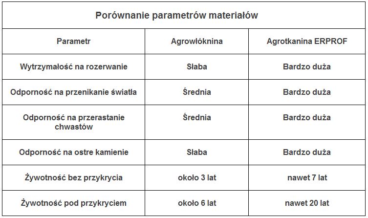Параметры предлагаемого агротекстиля ЭРПРОФ: