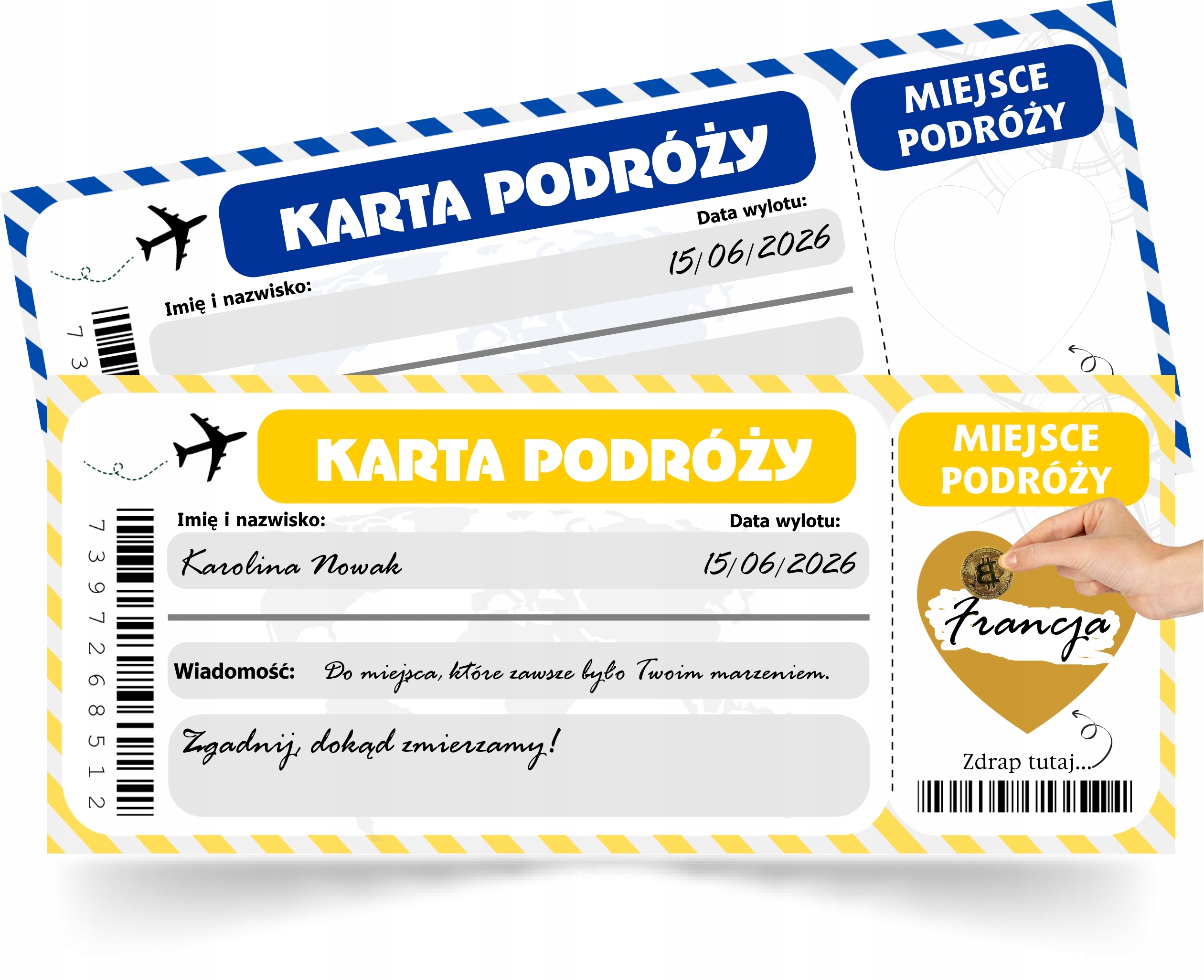 Дайте человеку, с которым вы отправляетесь в путешествие, персонализированную карту колоды с возможностью обнаружения пункта назначения или любого сообщения в виде карты царапины!
