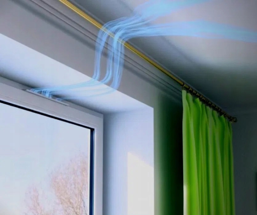 Независимая установка диффузора на монтированном окне возможна из -за отсутствия необходимости делать отверстия в рамке крыла и окон. Воздух течет внутри комнаты через зазоры, образованные после снятия уплотнений, расположенных на раме рамы и окон. Путь воздушного потока представлен на графике выше.