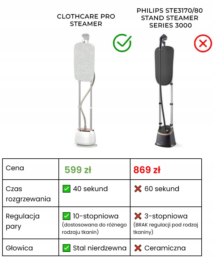✅ Посмотрите сами, чем отпариватель Air Essence ClothCare PRO отличается от конкурирующего устройства: