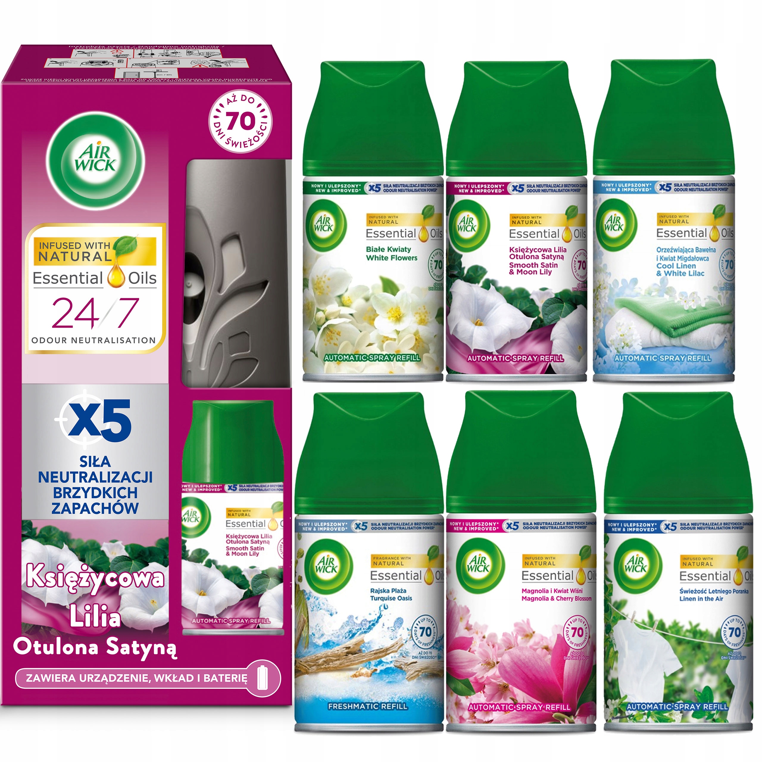 Автоматический освежитель воздуха Air Wick Freshmatic — «Лунная лилия, завернутая в атлас», 250 мл + 7 сменных насадок