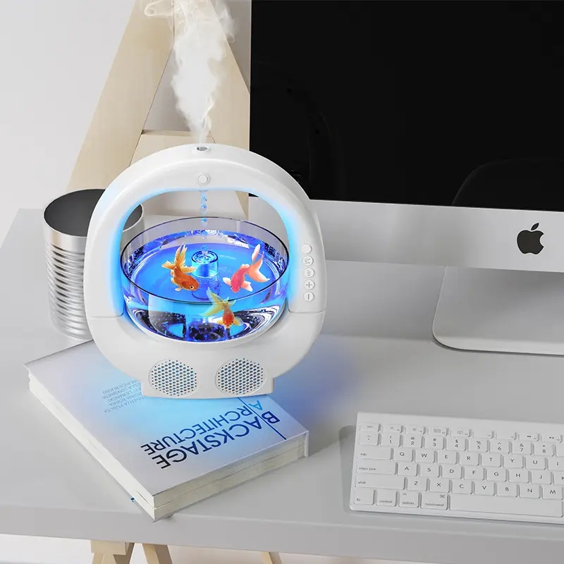 Увлажнитель воздуха 3-В-1 с эффектом антигравитации, многофункциональная ароматерапевтическая камера с динамиком Bluetooth, аквариумом и освещением настроения