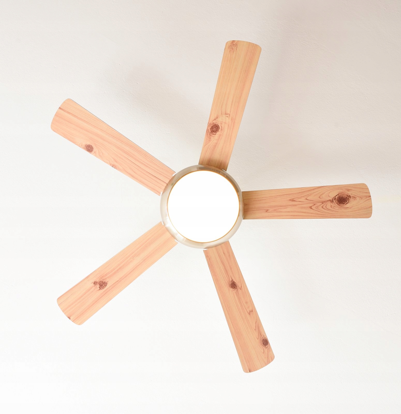 Потолочный вентилятор AireRyder Ursa с подсветкой и дистанционным управлением, сатиновый корпус, никель, крылья белый/сосна, 132 см