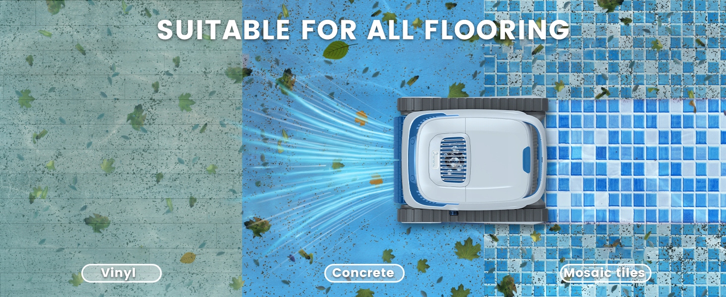 Мощное сосание: оснащено двигателями с двойным приводом и двигателями насоса с максимальной мощностью 45 000 п. Он отлично подходит для удаления песка, листьев и постоянной грязи из крытых бассейнов и грунтовых бассейнов.