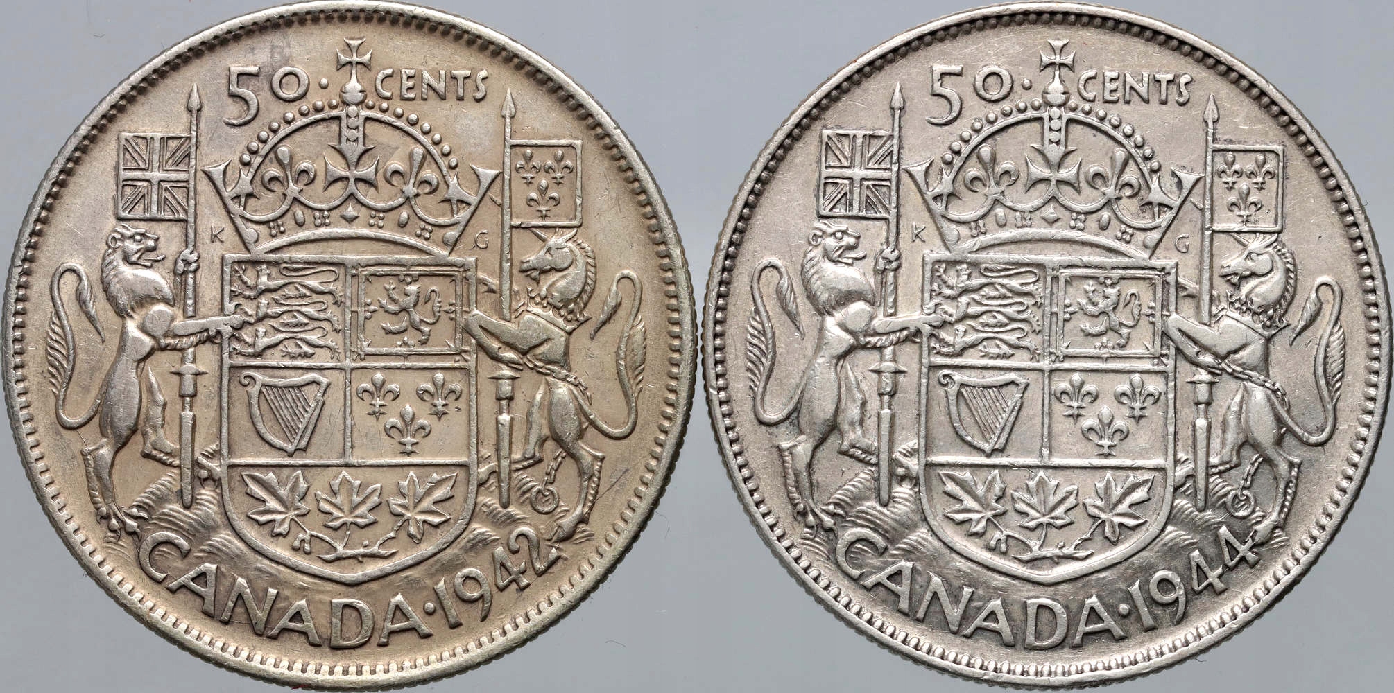# AJ# Canada, Jerzy Vi, 2 x 50 центов 1942, 1944