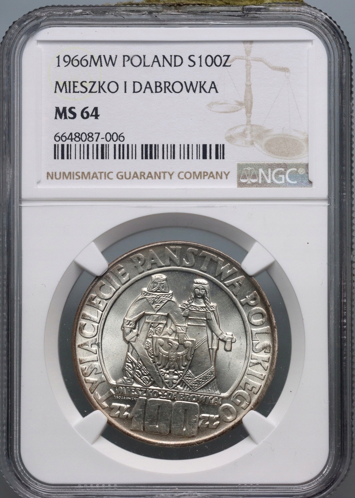 #AJ# Польша, 100 злотых 1966 года, Мешко и Домбровка, NGC MS64