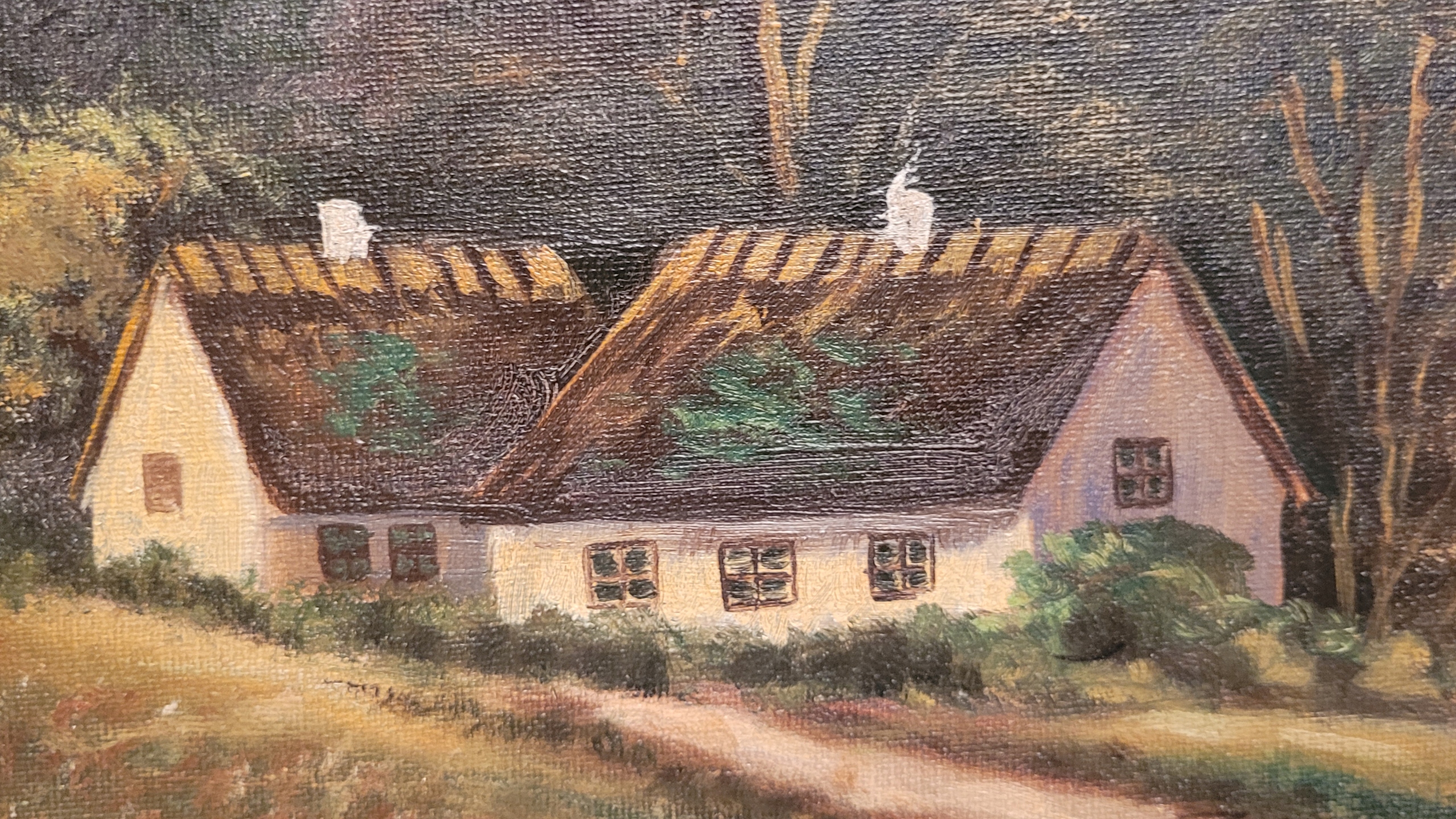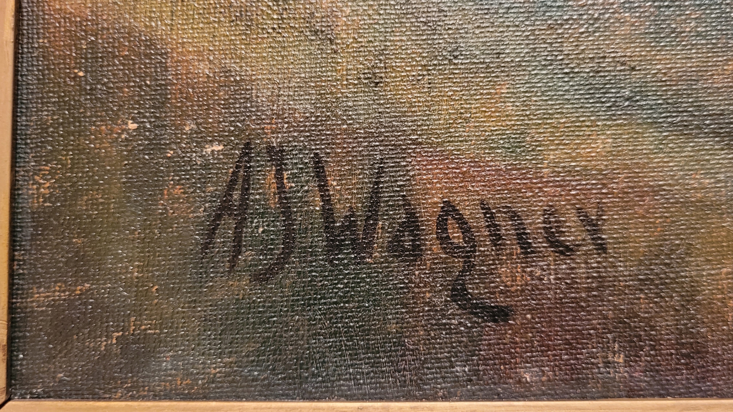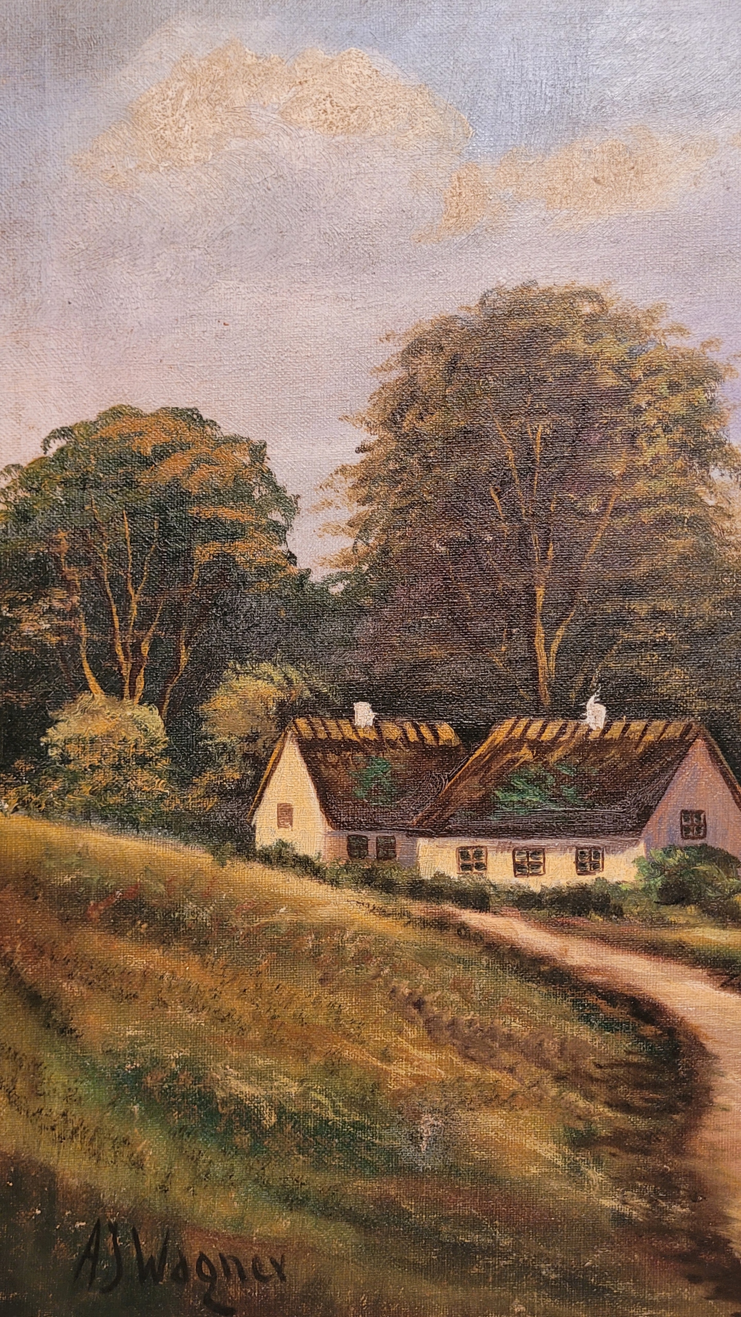 AJ.Wagner - «Сиедлиско на реке», старая нефтяная картина.