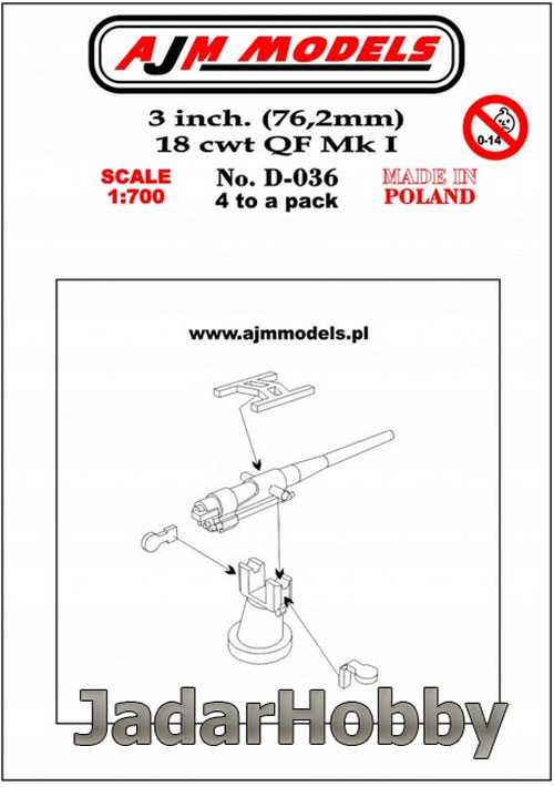 AJM Models D-036 1/700 3 Inch (76.2mm) 18 cwt QF Mk I (4 szt.)