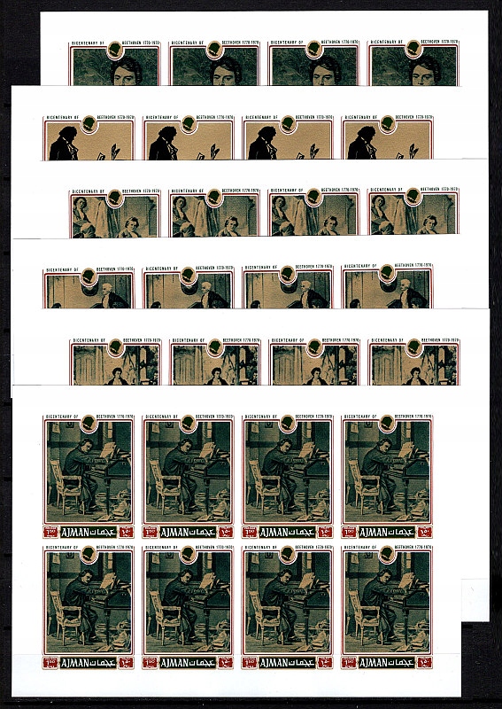 **AJMAN 794B-799B - ARKUSIKI - NIEZĄBKOWANE - LUDWIG VAN BEETHOVEN