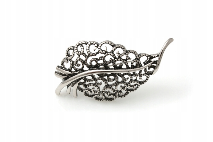 Красивая брошь в стиле ретро с ажурным мотивом в виде листьев.
