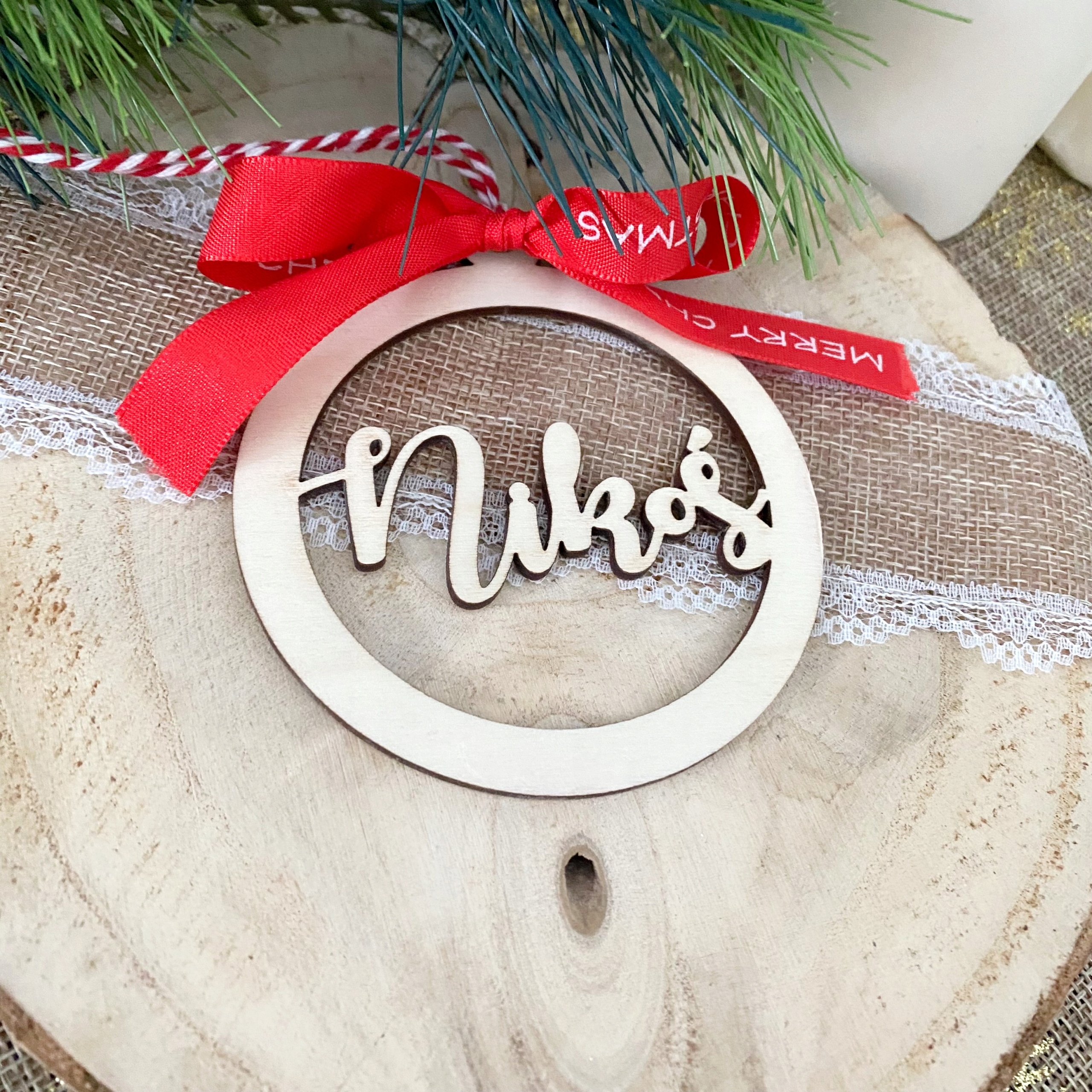 ДЕРЕВЯННЫЙ ШАР ДЛЯ ЕЛКИ С ЛЮБЫМ ИМЕНЕМ - НОВОГОДНЕЕ УКРАШЕНИЕ