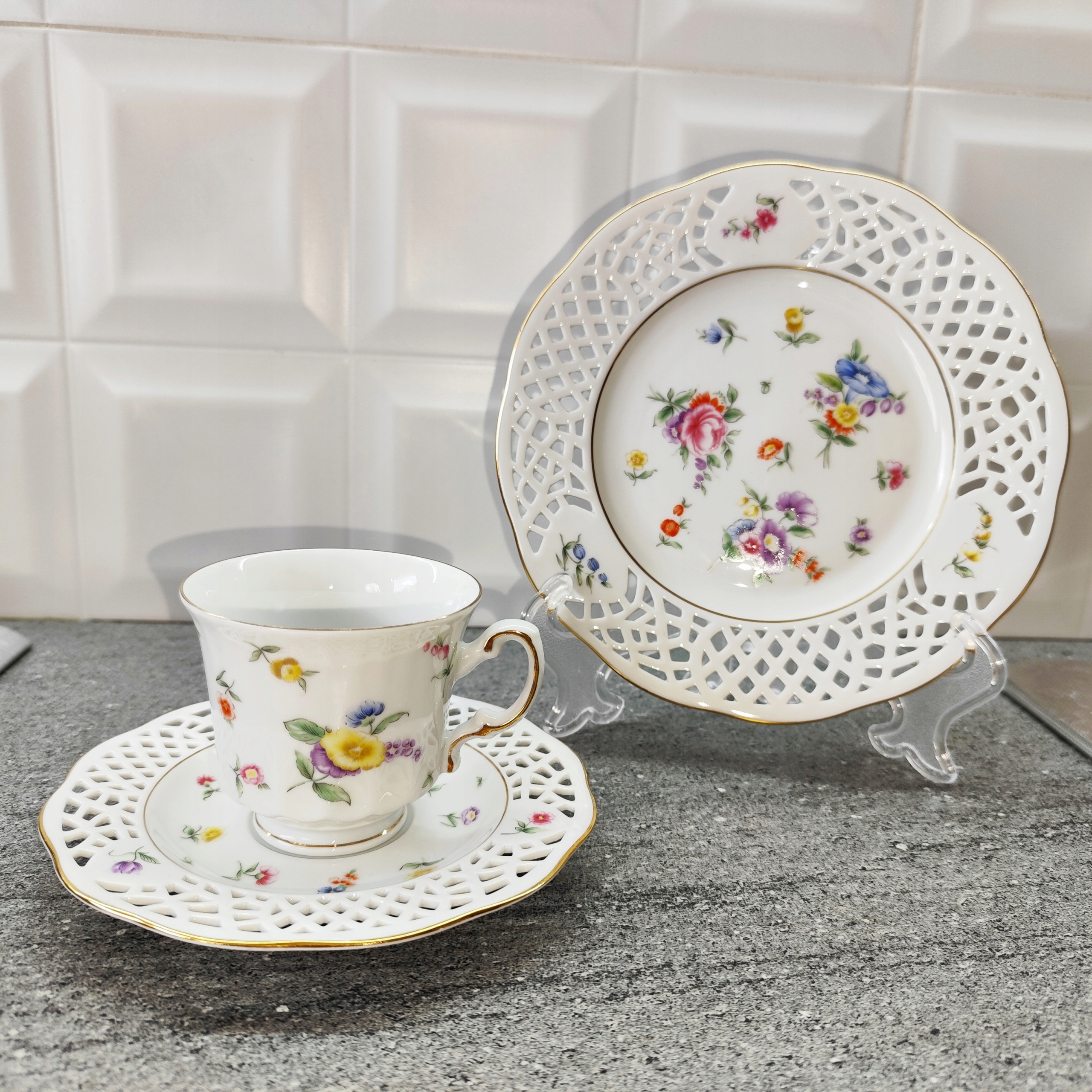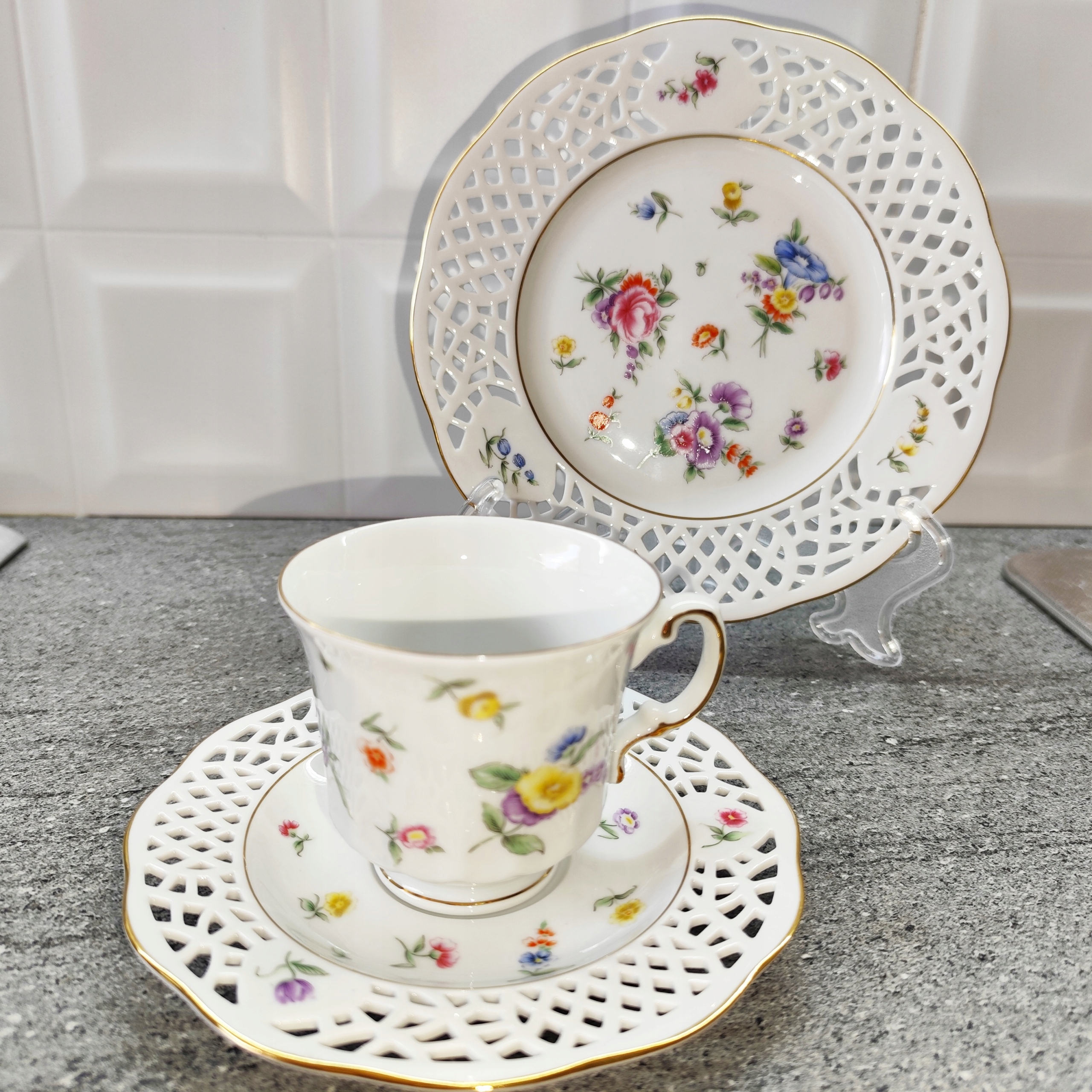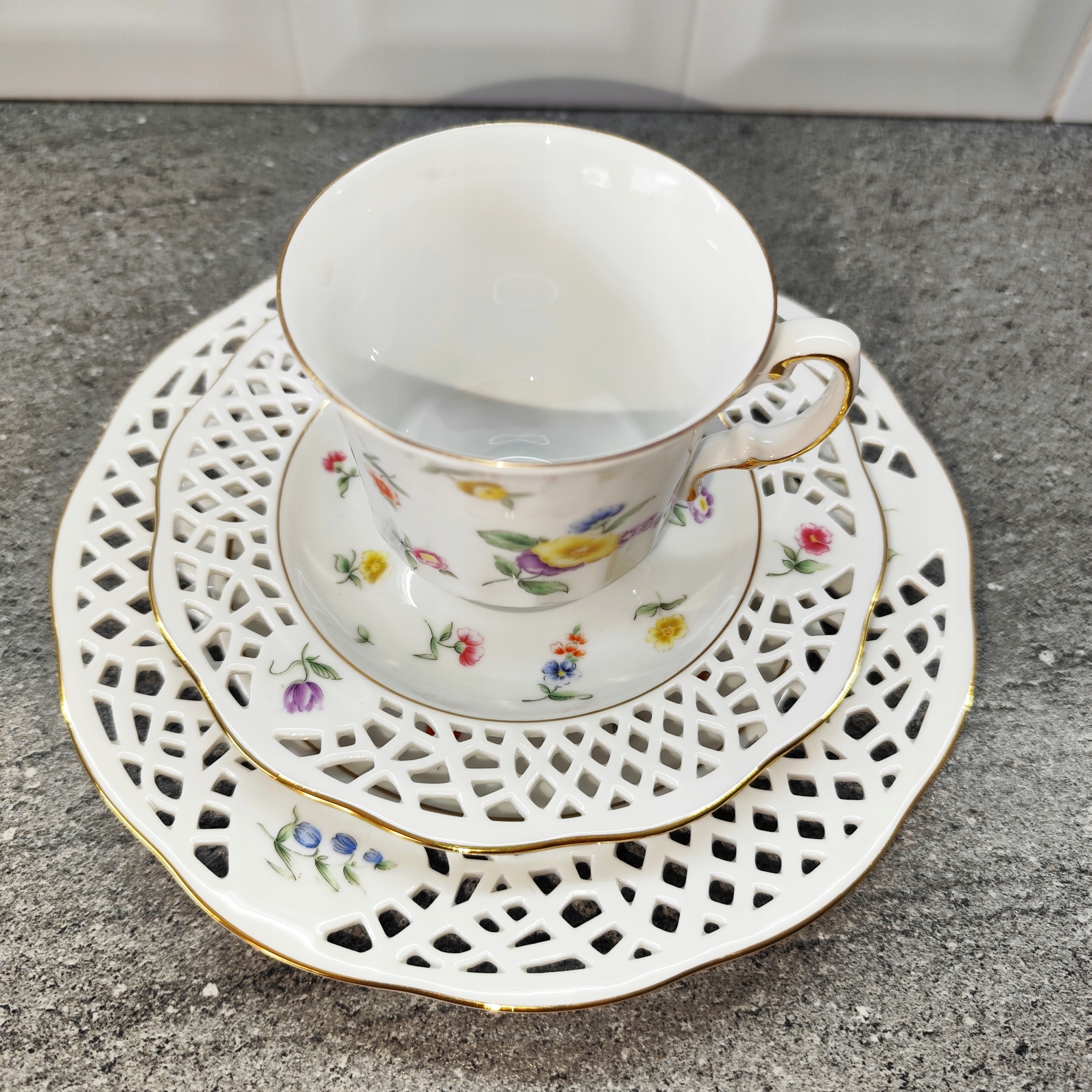 Фарфоровая трио ажурная фарфоровая чашка с подписью Burg Lindau
