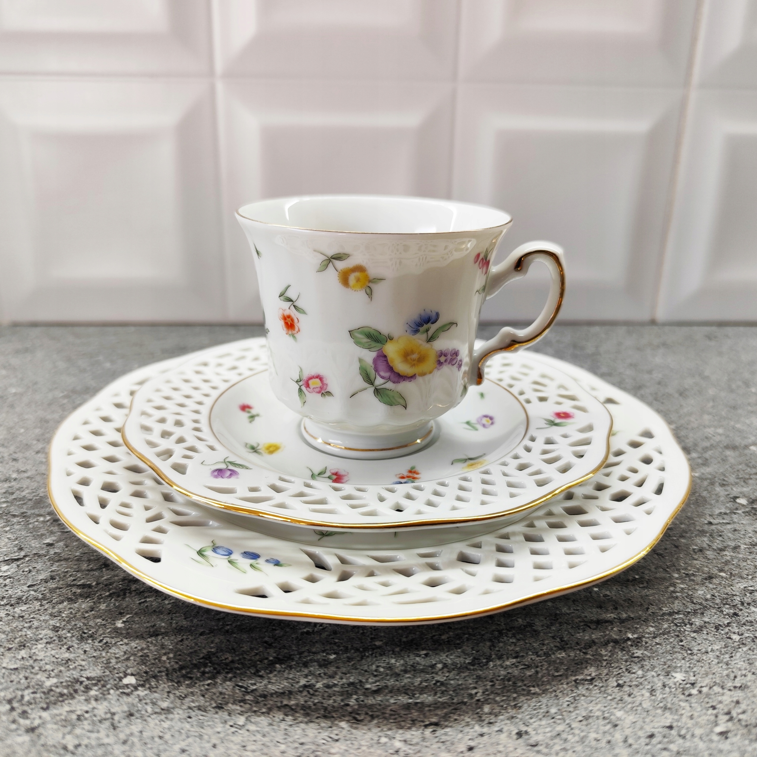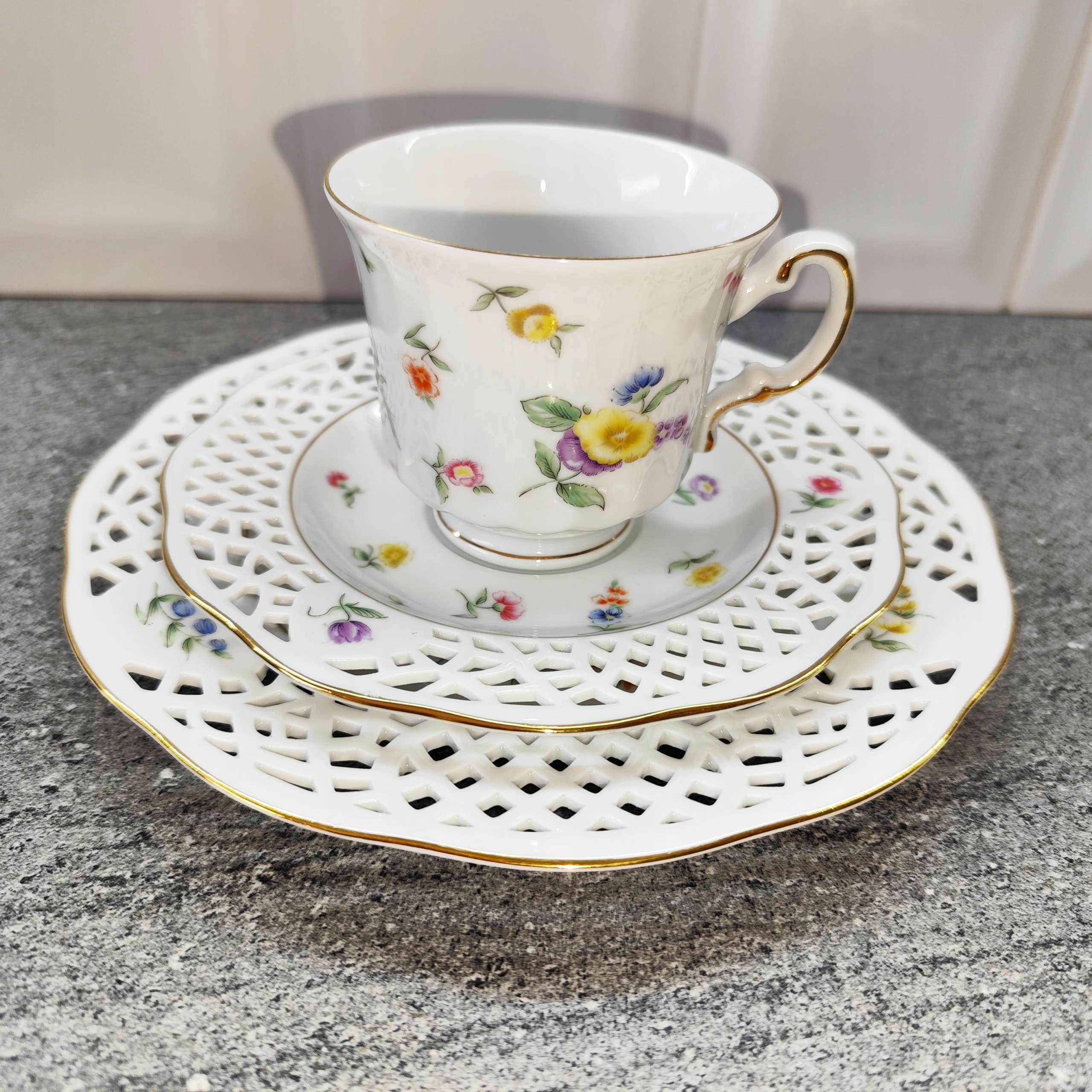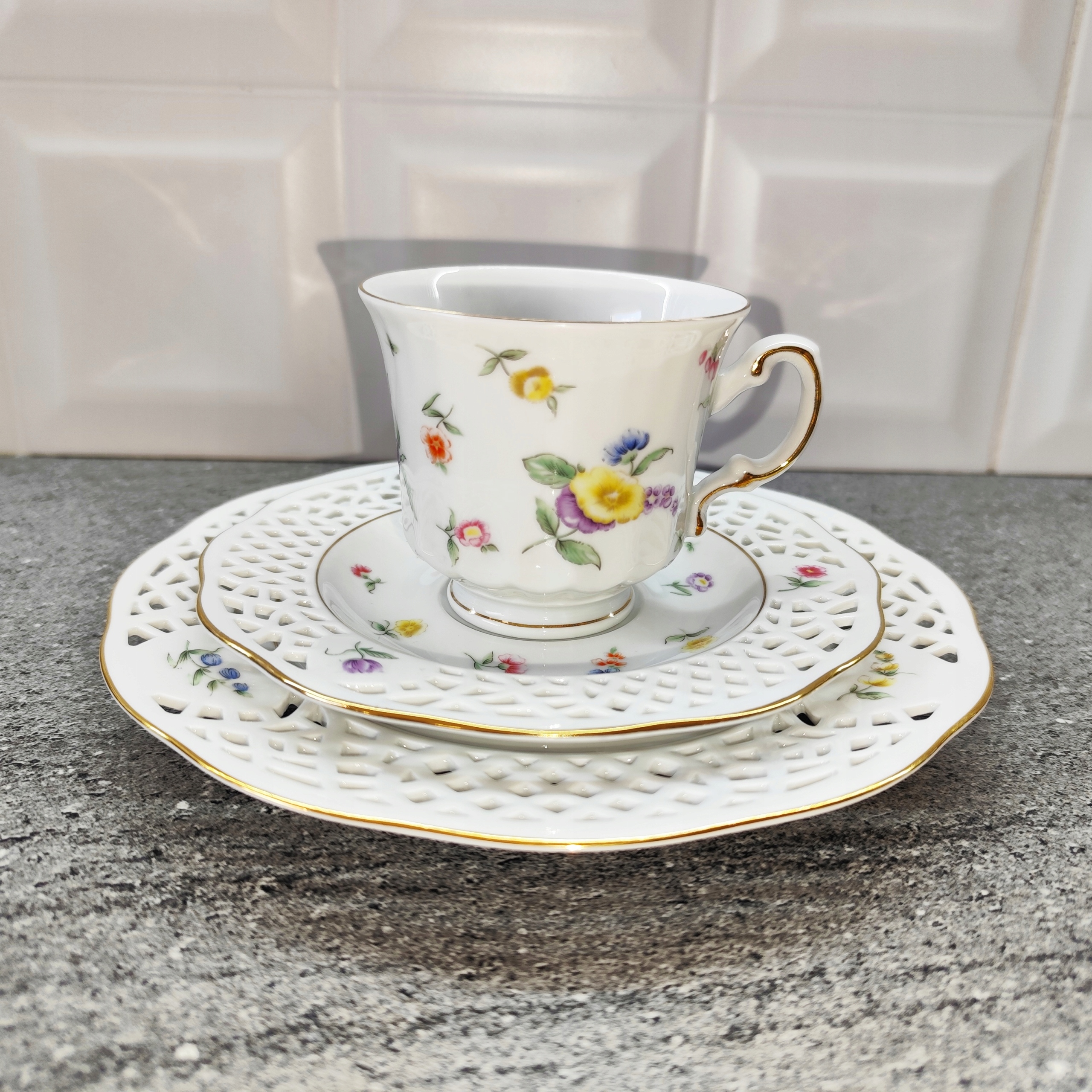 Фарфоровая трио ажурная фарфоровая чашка с подписью Burg Lindau