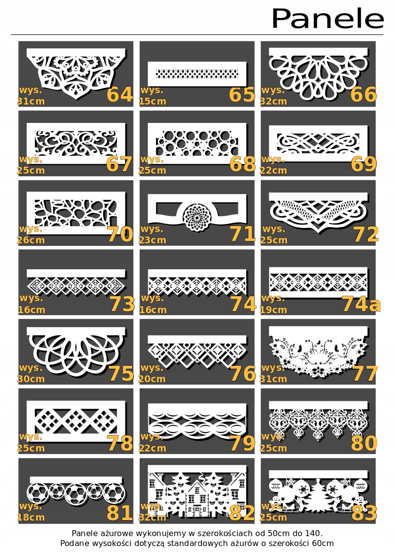 Как ведущий производитель, мы предлагаем ажурные ямы, готовые для отделки оконных полотен. Панели изготавливаются из высококачественного материала лазерным методом, что позволяет получить идеальную кромку без потертостей. Ажур состоит из 5 слоев с усилением, что гарантирует идеальное расположение панелей. Не дайте себя обмануть панелям, изготовленным из одного толстого слоя, они не будут такими жесткими. Секрет заключается в жесткости ажура. Панель оснащена складкой для крепления на штору. Прекрасное дополнение к отделке ширм, штор и жалюзи. Это высококачественный товар, доступный в магазинах штор.
