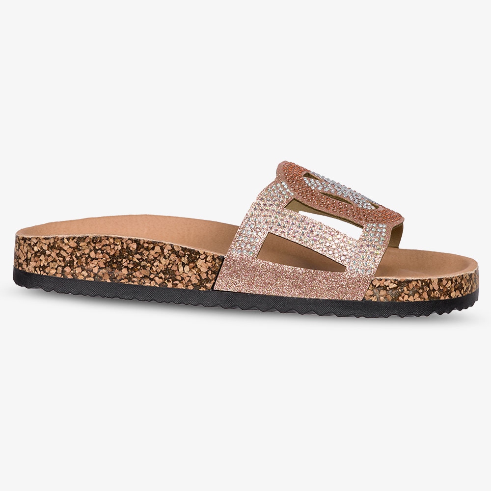 Розовые ажурные тапочки со стразами и профилированной пробковой подошвой Casu H23X3-C