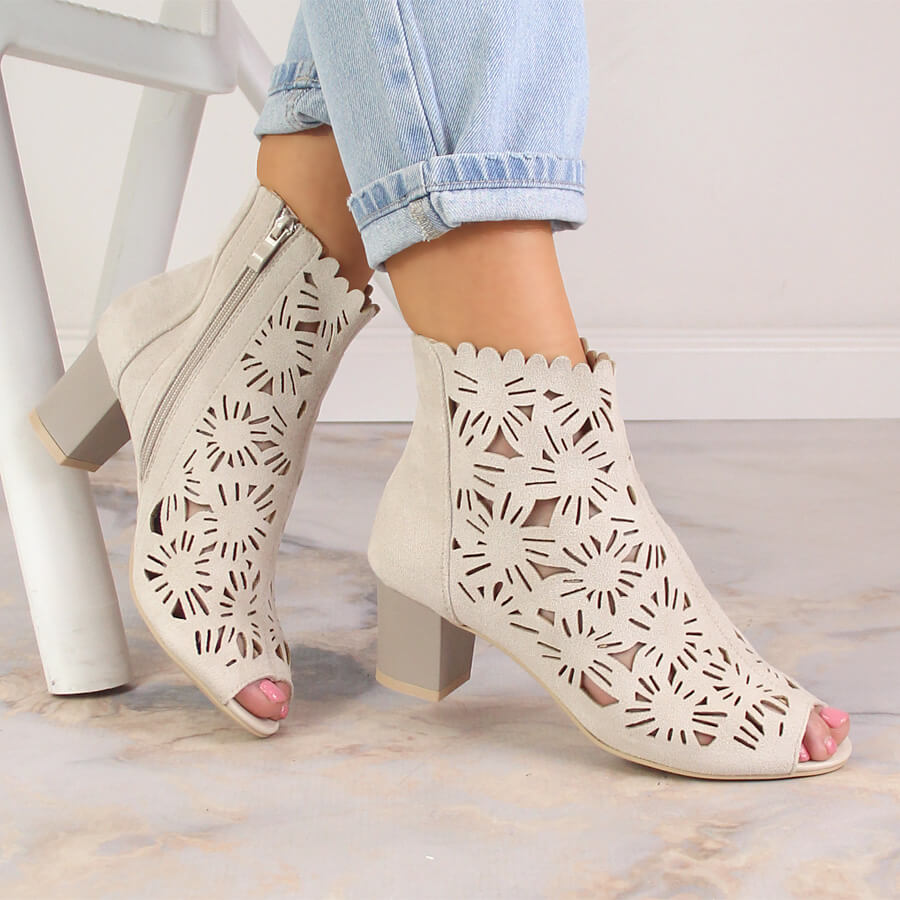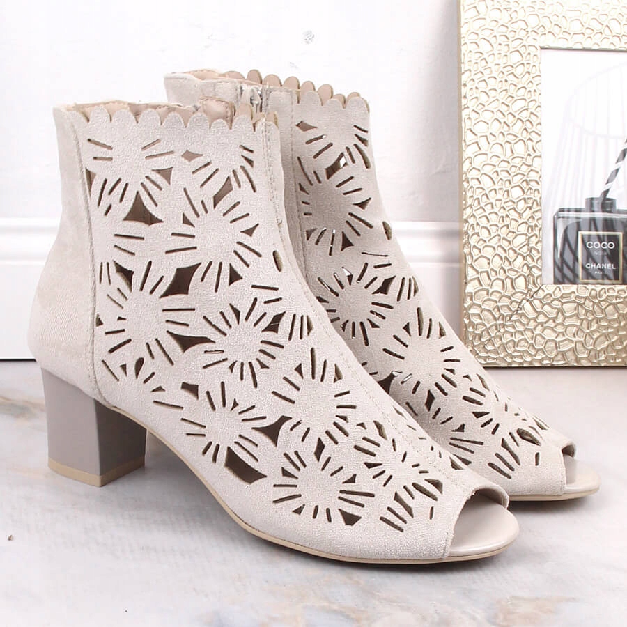 Женские весенние ажурные ботильоны с открытым носком, бежевые M.Daszyński MR1954-10