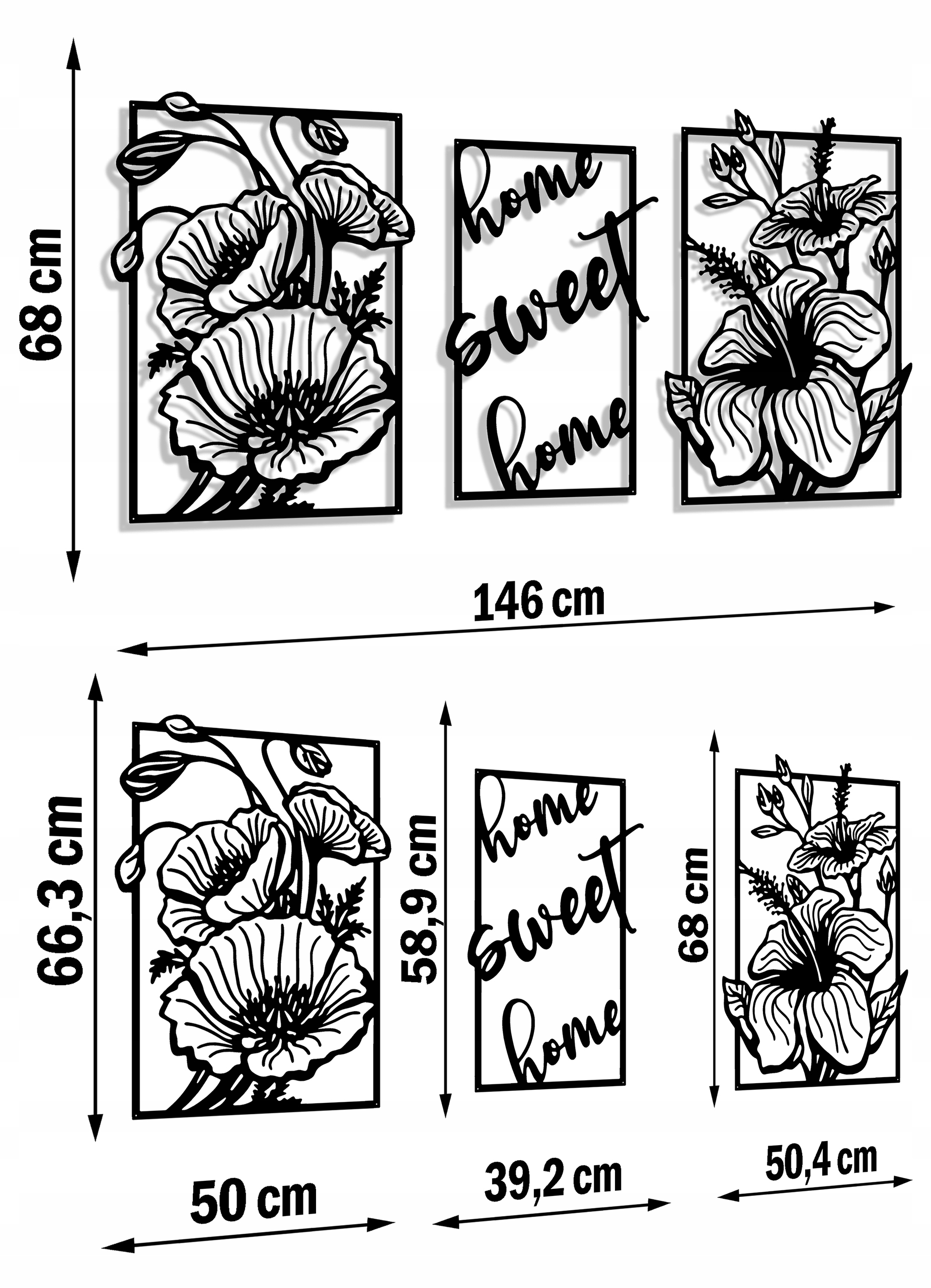 АЖУРНИЙ РОЗПИС ДЕКОРАЦІЯ СТІН КВІТИ ДОМІМ SWEET HOME ВІТАЛЬНЯ TRIPTIQUE ВЕЛИКИЙ