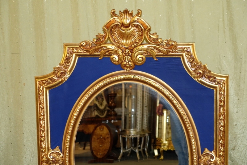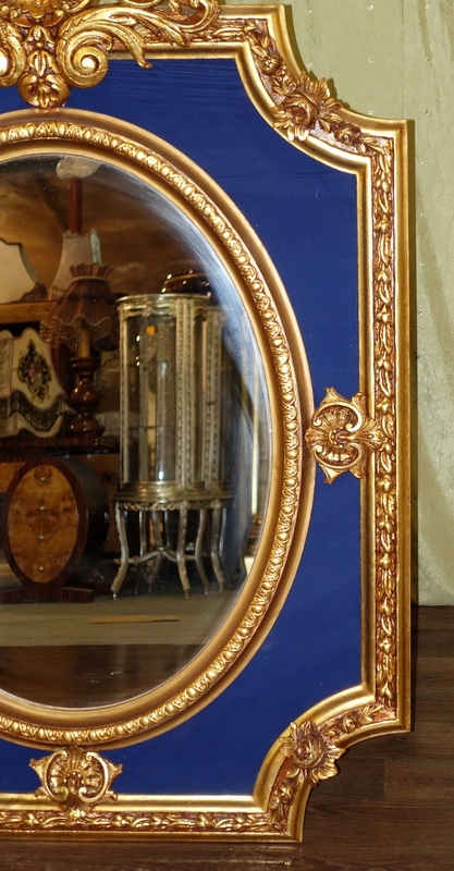 Стильное зеркало с чудесным наконечником в верхней части и фоном из сапфирового бархатного материала. Новый, выполненный в старинном дворцовом стиле. Рама зеркала из дерева + лепной декор в цвете старого, старинного золота. Ажурная форма означает, что, несмотря на большие размеры, она легкая и в то же время очень тонкая. Заключение основной, овальной поверхности в прямоугольник означает, что мы можем использовать в дизайне интерьера овалы и прямоугольники. Зеркало очень привлекательное и декоративное. Он непременно станет украшением вашего дома....поэтому очень рекомендую!!!