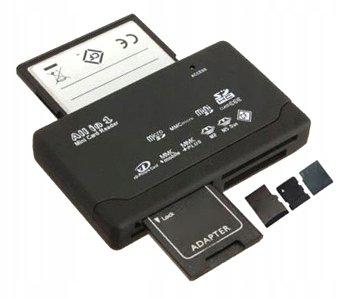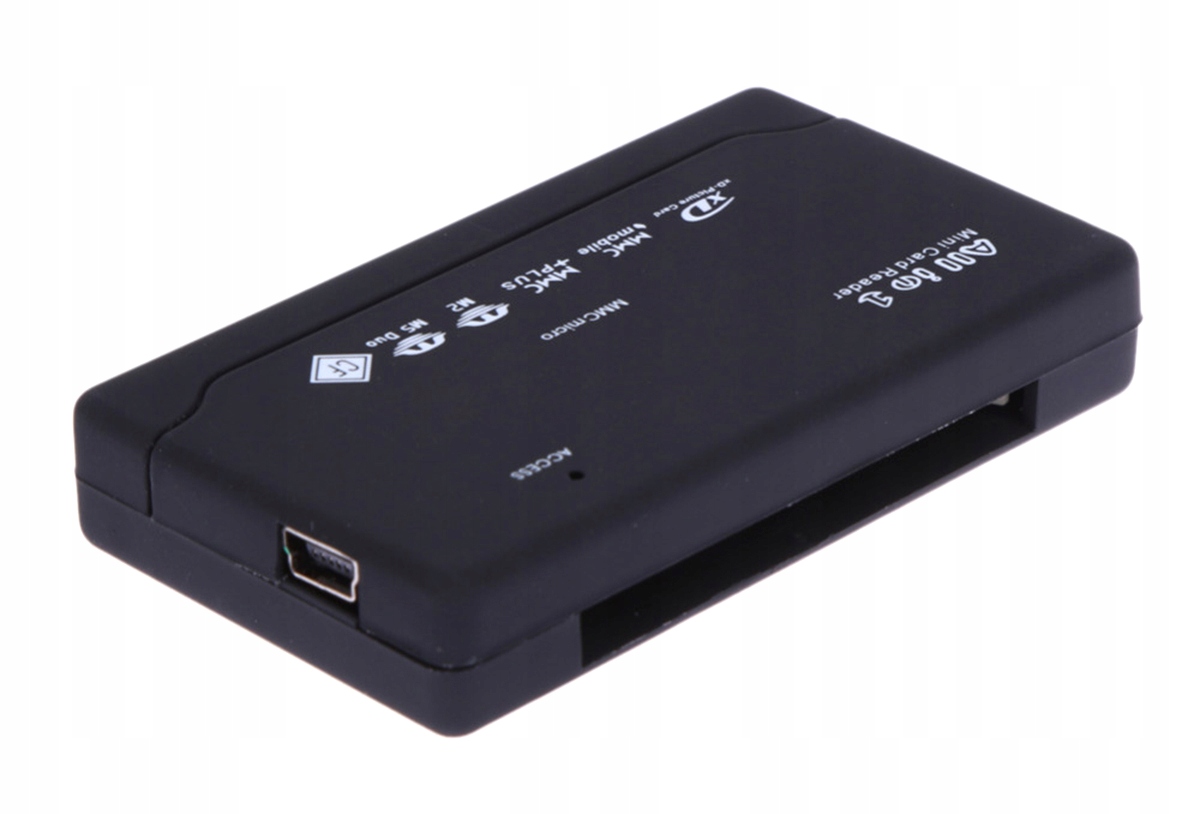 Новое высококачественное универсальное устройство для чтения карт памяти (все в одном)! Он характеризуется чрезвычайно малыми размерами и совместимостью с такими картами, как: microSD (в том числе microSDHC), SD, SDHC SDXC и TF, RS-MMC, MMCmobile, MMC Plus, MS Duo и xD Picture Card. Идеальное дополнение к стандартным модулям карт памяти в персональных компьютерах и незаменимая вещь, когда они отсутствуют! Чрезвычайно универсальное решение! Он существенно ускоряет работу с носителями данных и не требует дополнительных адаптеров для SD-карт. Также вы избежите проблем с длительным запуском компьютера и операционной системы и повышенным энергопотреблением — только 1 USB-порт, к которому подключен HUB, остается заряженным. Использование технологии USB 2.0 позволяет добиться значительно высокой скорости передачи данных — до 480 Мбит/с (60 МБ/с), сохраняя при этом полную совместимость с интерфейсом USB 1.1 и 1.0 (на соответственно меньшей скорости).