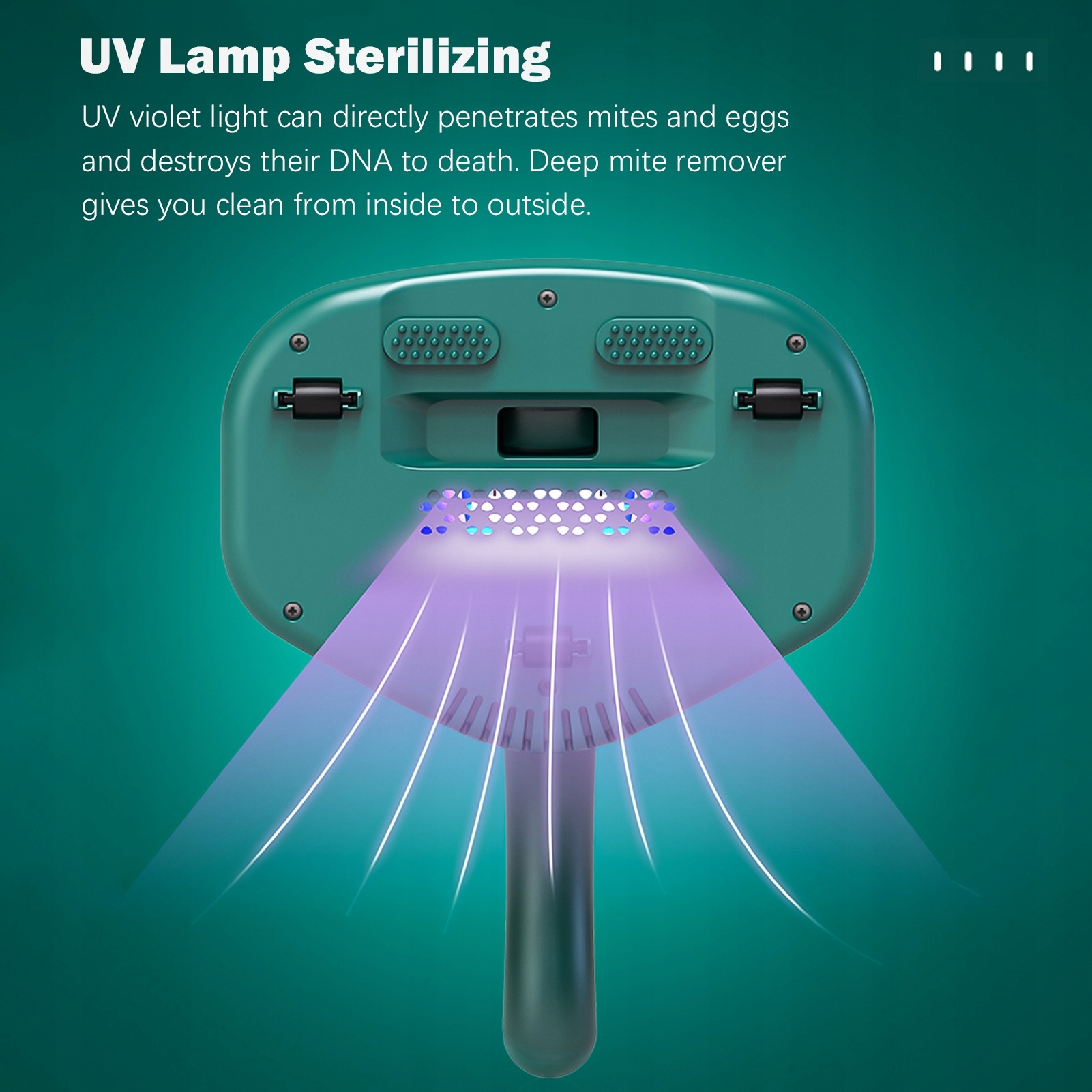 2. С сильной подкладкой, чтобы удалить клещей на глубине, он требует фиолетового ультрафиолетового света, который непосредственно проникает в клещей и яйца и разрушает их ДНК до смерти. Глубокая чистая клещей дает очистку изнутри.