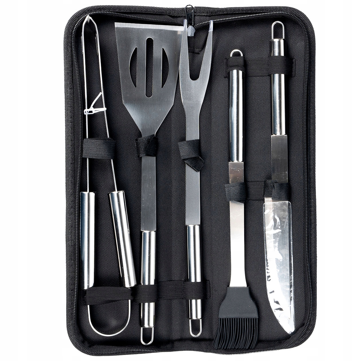 AKCESORIA SZTUĆCE DO GRILLOWANIA W ETUI Z RĄCZKĄ PRZYBORY 5 SZTUK ZE STALI