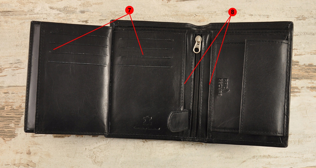 6 - два отсека для хранения, например, Сертификат регистрации автомобилей в обложках, школьных идентификаторах и т. Д.