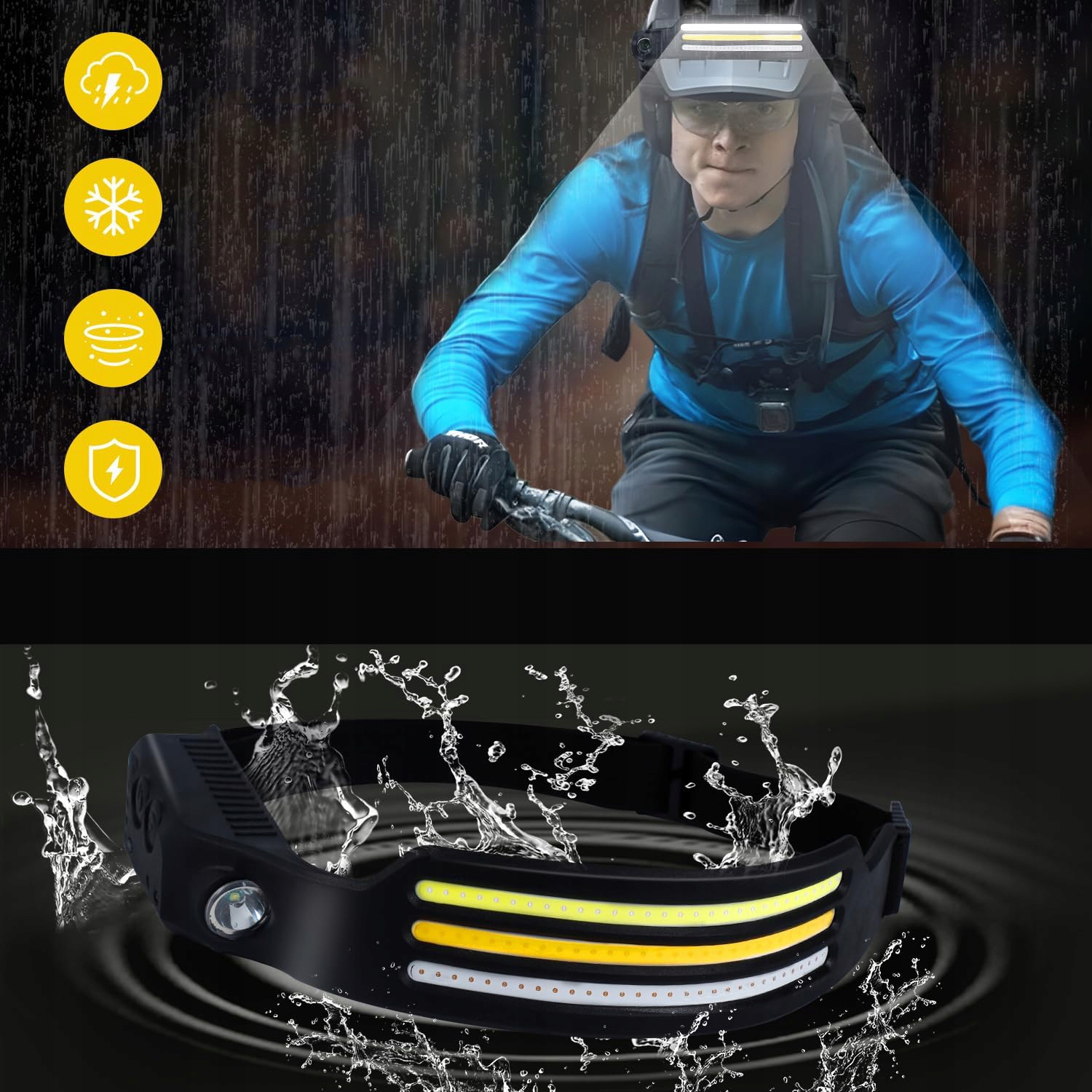 ✚ 【8 режимов】 - Имеет 3 световые полосы: белую, теплую и красную. и боковой свет, всего 8 режимов освещения: COB 100% белый свет, COB 40% белый свет, COB 100% теплый свет, COB 40% теплый свет, COB 100% свет красный, COB 40% красный свет, XPE 100% белый свет, XPE 40% белый свет. Широкий световой луч на 230° обеспечивает очень широкое поле зрения, поэтому вы можете осветить выбранную область, не поворачивая головы. Не упустите этот идеальный налобный фонарь COB для использования в мастерской, кемпинге, на велосипеде, выгуле собак, отдыхе на природе или в экстренных ситуациях дома.