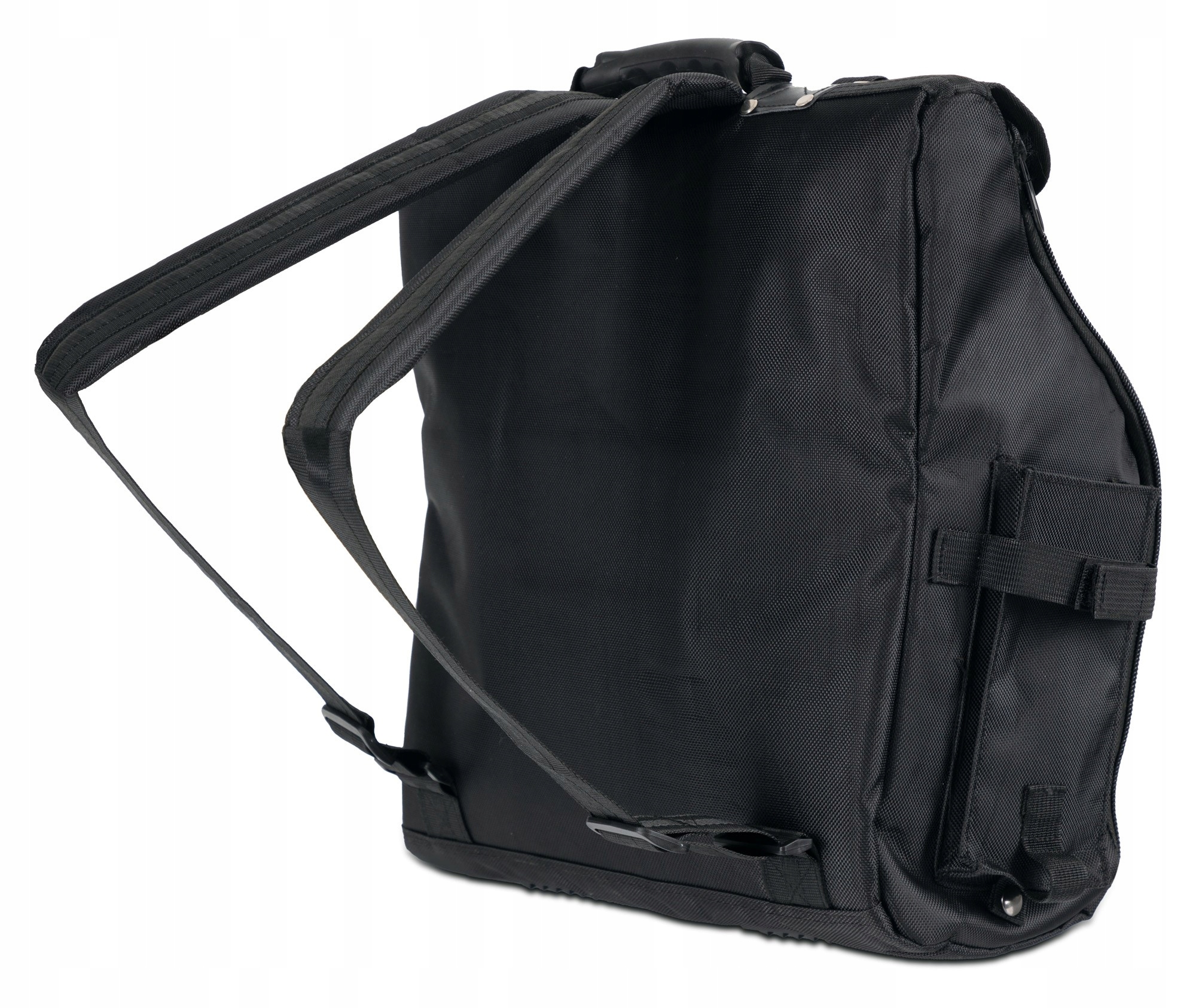 Гармошка для начинающих с ремнями и футляром. 72 баса, малый вес 7,8 кг, черный цвет. Отличительной особенностью этого ценового диапазона является черный протектор сильфона, изготовленный из устойчивого к истиранию синтетического материала. В комплект поставки аккордеона входят два мягких регулируемых ремня и чехол для переноски.
