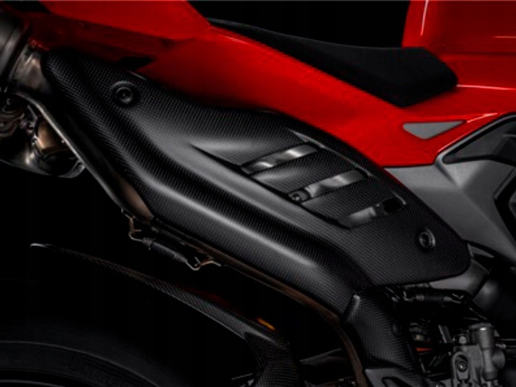 Двойной глушитель под сиденьем делает дизайн мотоцикла еще более уникальным и подчеркивает уникальную эстетику Streetfighter V4, добавляя ему нотку агрессии.
