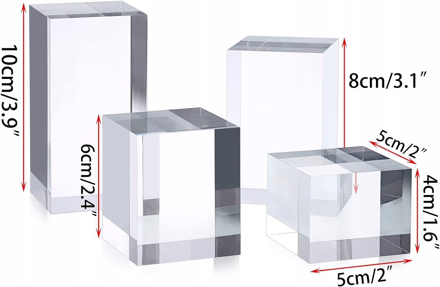 - Размеры: 5 x 5 см (длина x ширина) с различной высотой: 4 см, 6 cm, 8 см, 10 см