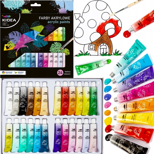 ИНТЕНСИВНЫЕ ШКОЛЬНЫЕ АКРИЛОВЫЕ КРАСКИ ДЛЯ КРАСКИ 24 ЦВЕТА 6 МЛ - KIDEA