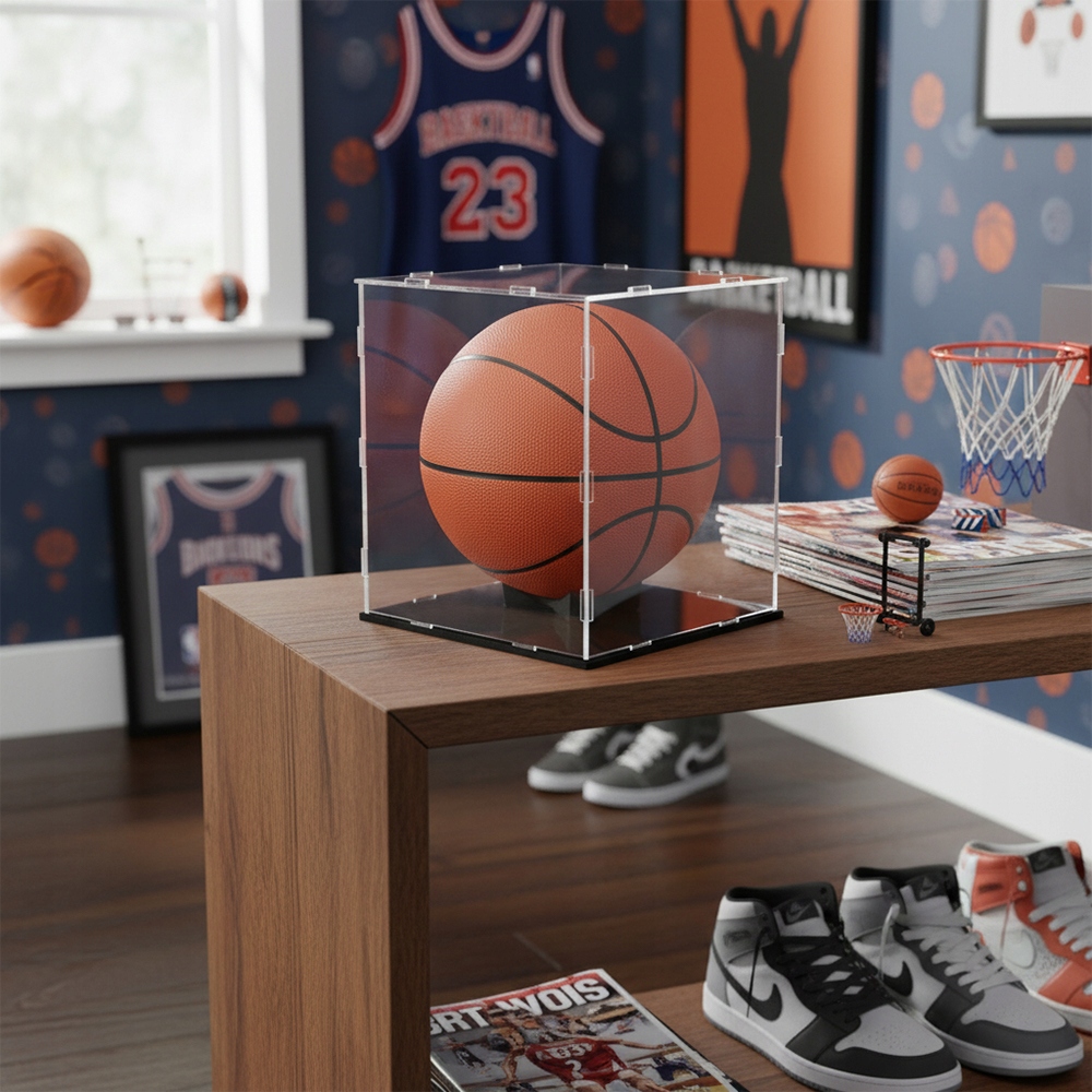 Внутренние размеры 25x25x27 см позволяют демонстрировать спортивные мячи (футбольные, волейбольные, баскетбольные), а также другие предметы коллекционирования, размер которых не превышает 25 см. диаметр.