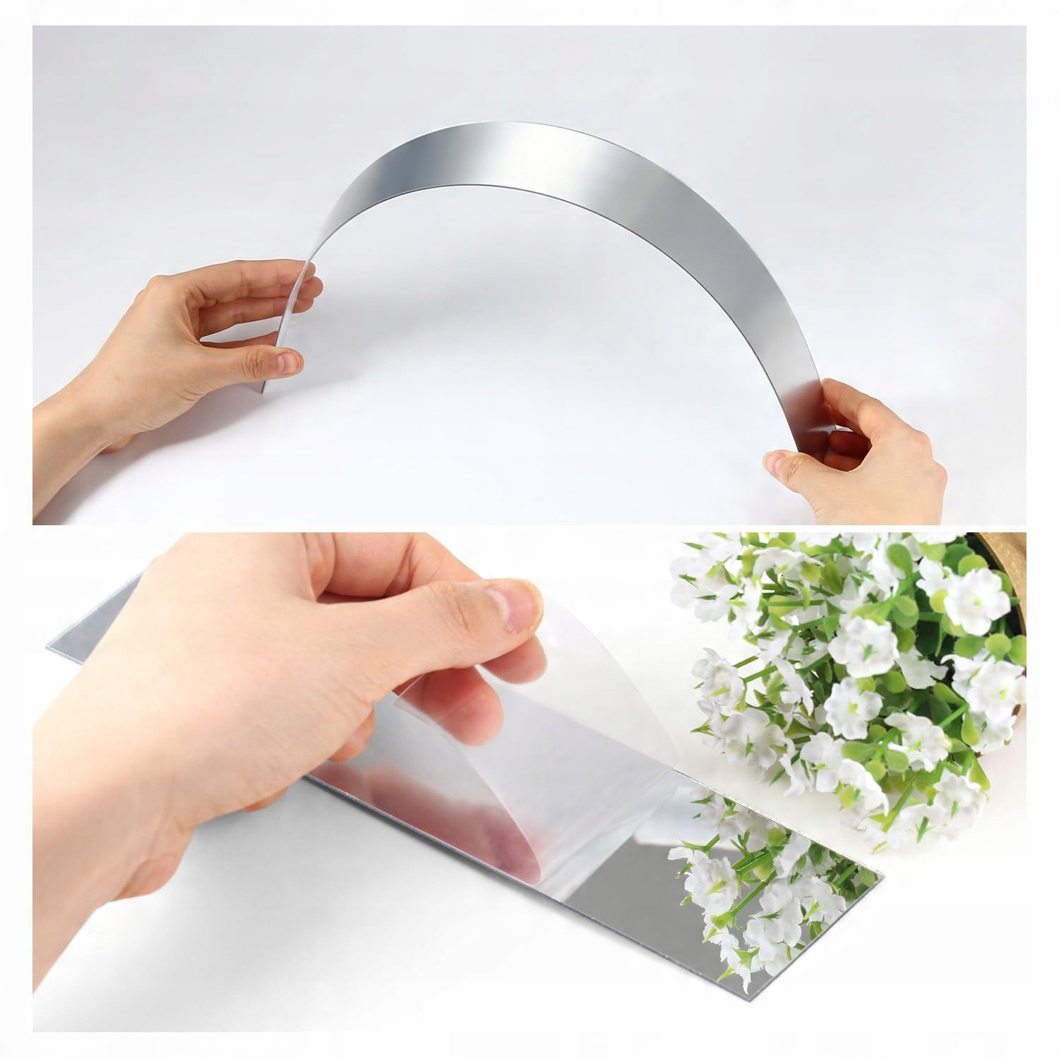 - Самоклеющееся настенное зеркало изготовлено из высококачественного акрила, длина и ширина 50х5см (толщина: 1мм). Самоклеящееся зеркало является прекрасной заменой стеклянного зеркала, оно не деформируется и имеет хороший эффект украшения стены.