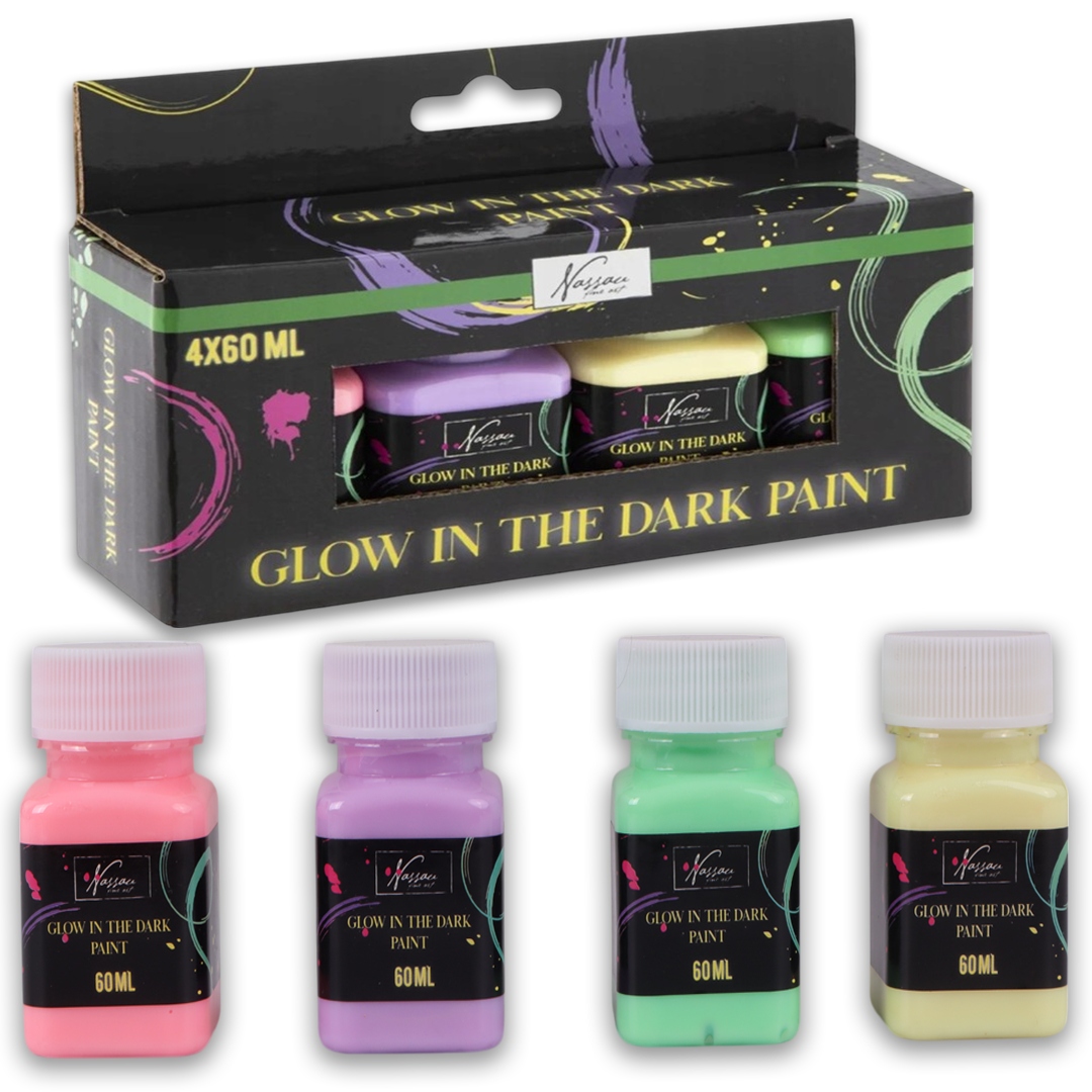 Акриловые краски, светящиеся в темноте, набор 4х60 мл акриловых красок
