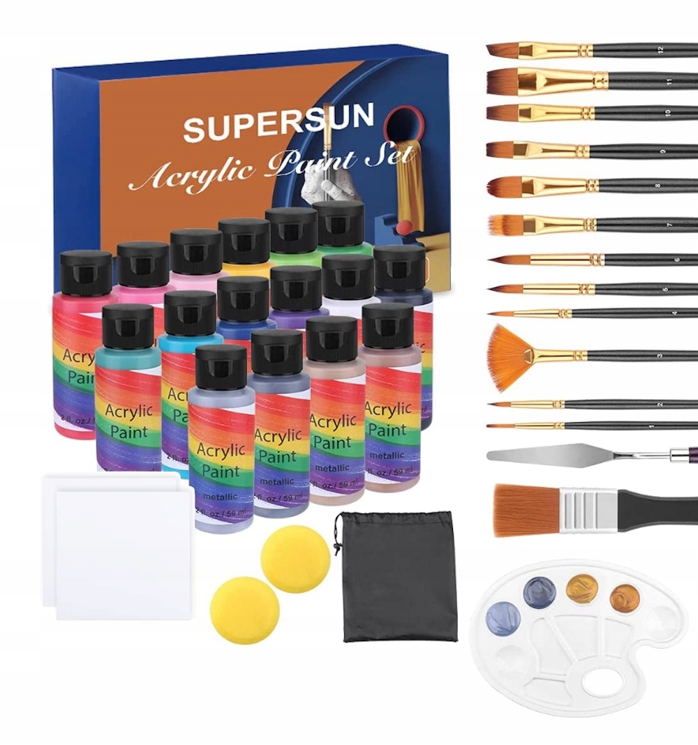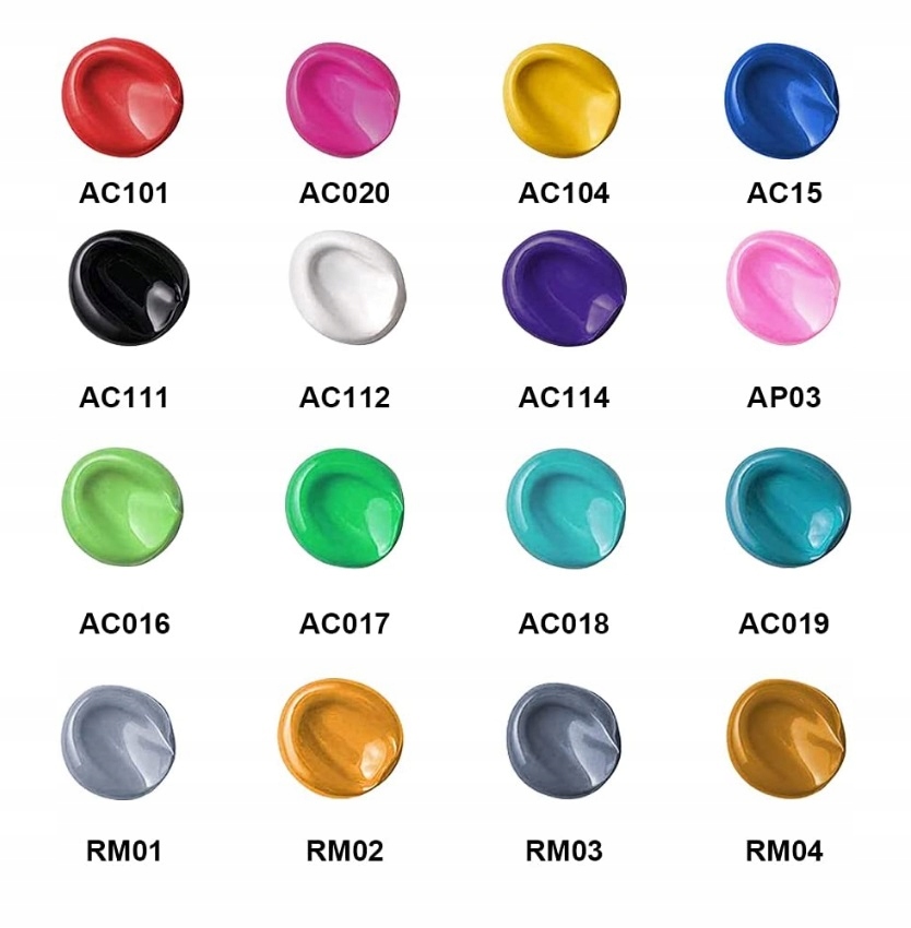 - 16 акриловых красок (12 базовых, 4 металлик)