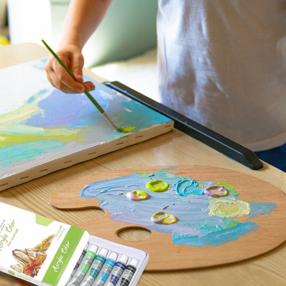 Набор красочных акриловых красок в удобных трубках, 6 мл каждая. Он идеально подходит для художественных классов для детей, а также подростков и взрослых. Набор включает в себя 12 основных цветов , с их использованием вы можете выполнять практически любую работу