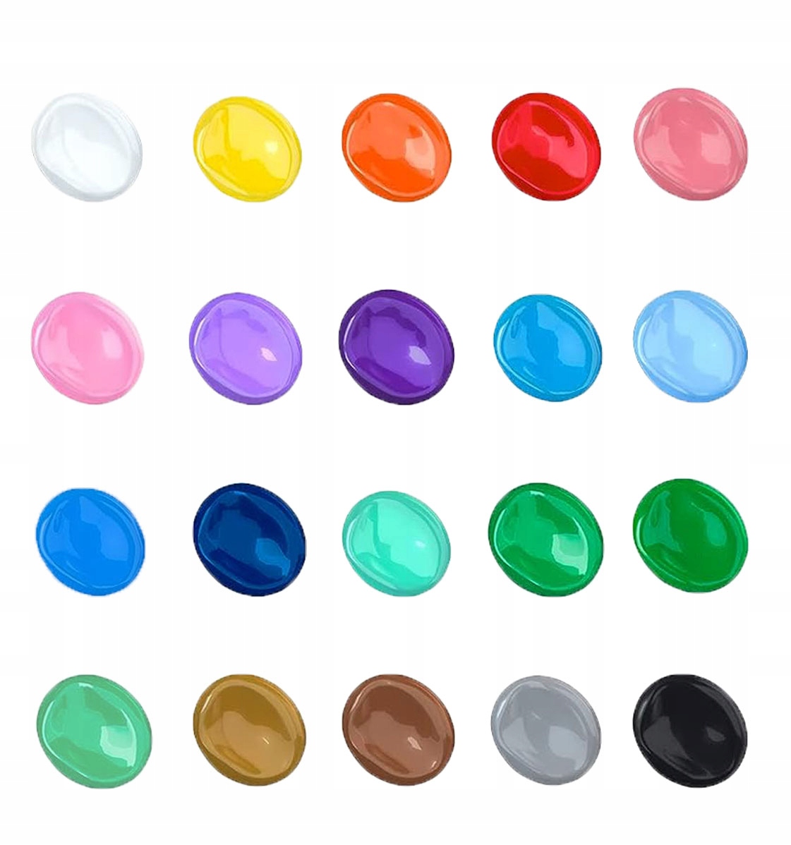 Краски упакованы в мягкие практичные флаконы, что повышает безопасность их использования. Формула на водной основе также нетоксична, что делает набор идеальным для детей и любителей.