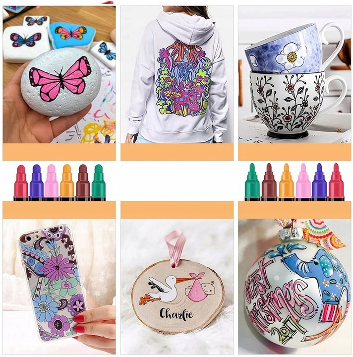 ❇️ Pпредназначены для декорирования различных материалов: Маркеры идеально подходят для декорирования камней, фарфора, стекла и других твердых поверхностей, демонстрируя их универсальность.
