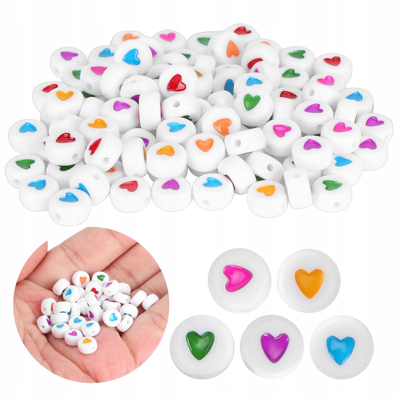 3Ò Эти бусины расположены на белом фоне с красочным сердечком посередине, что имеет хороший декоративный эффект.