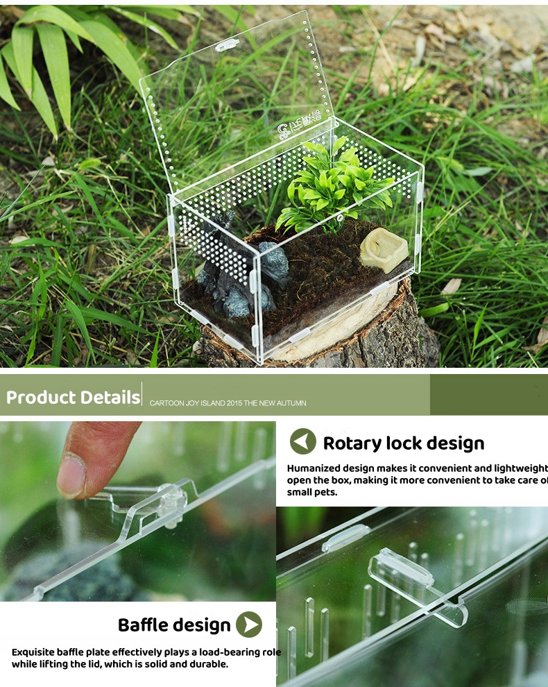 Террариум изготовлен из прочного, полностью прозрачного акрилового материала. Благодаря этому контейнер поможет вам наблюдать за вашим питомцем вблизи.