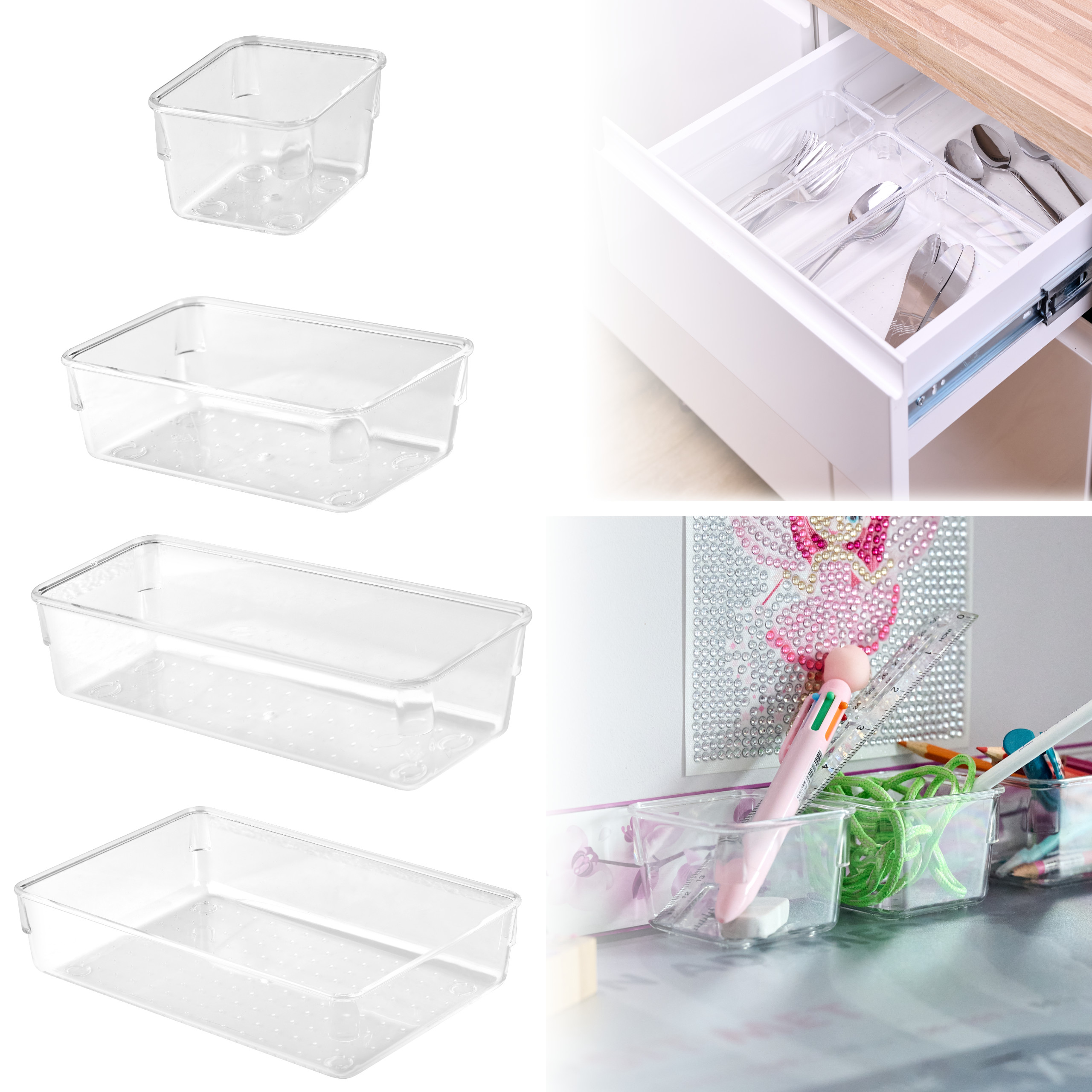 АКРИЛОВЫЙ ОРГАНАЙЗЕР ДЛЯ ЯЩИКОВ, КОРОБОК, КОНТЕЙНЕРОВ, НАБОР ИЗ 25 ШТ., 4 РАЗМЕРА
