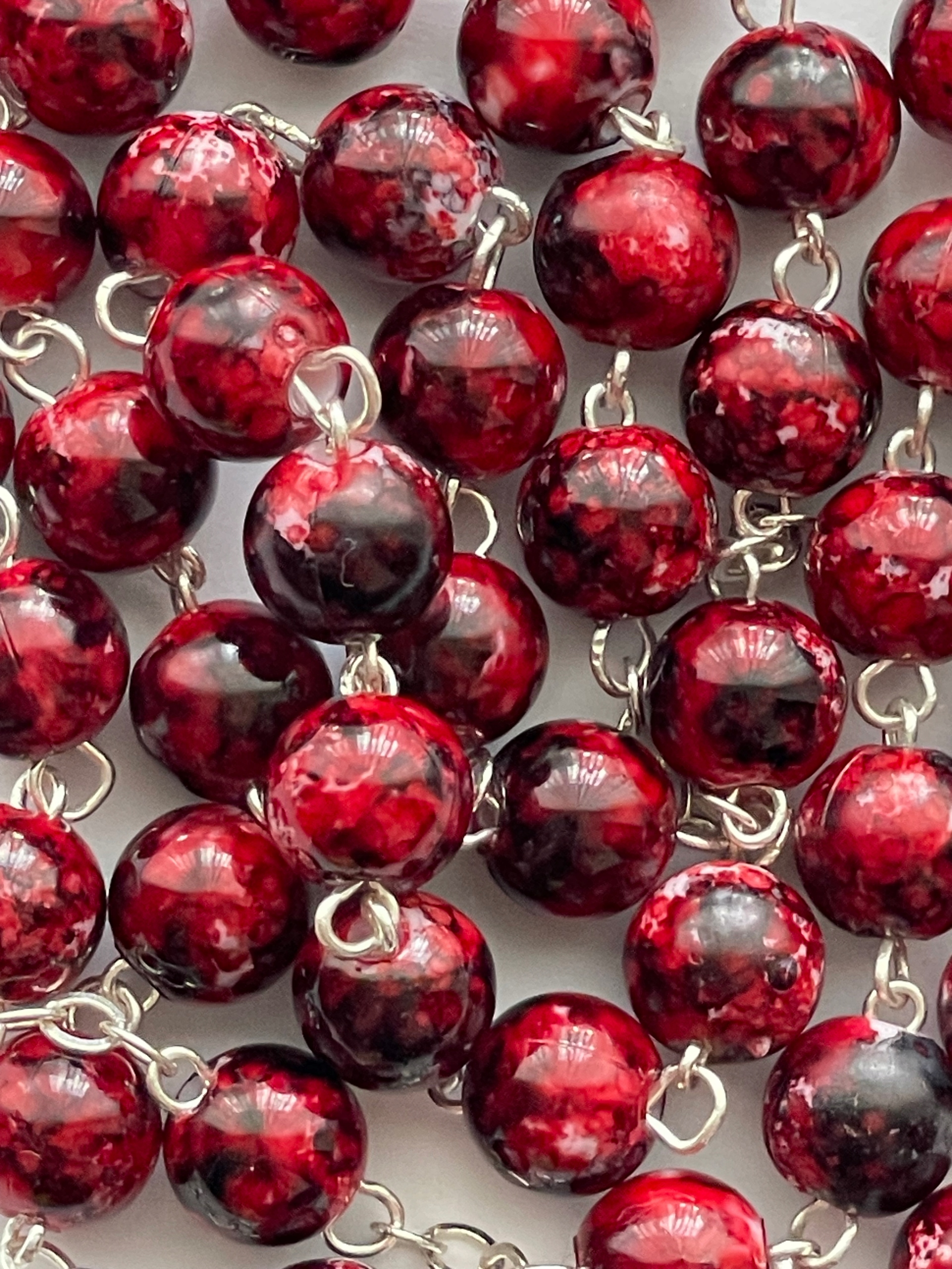 - акриловых бусин > в красном и бордовом цветес элементами белого