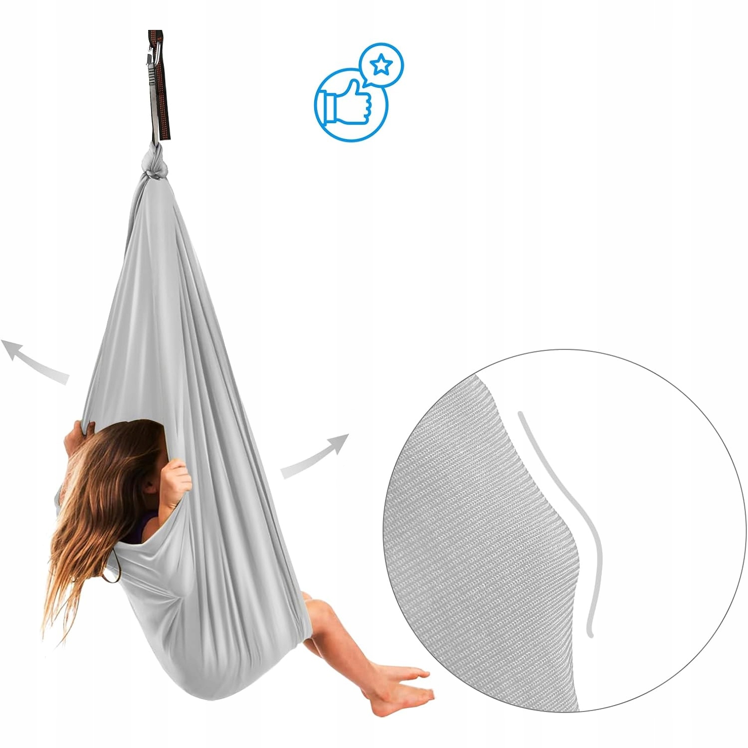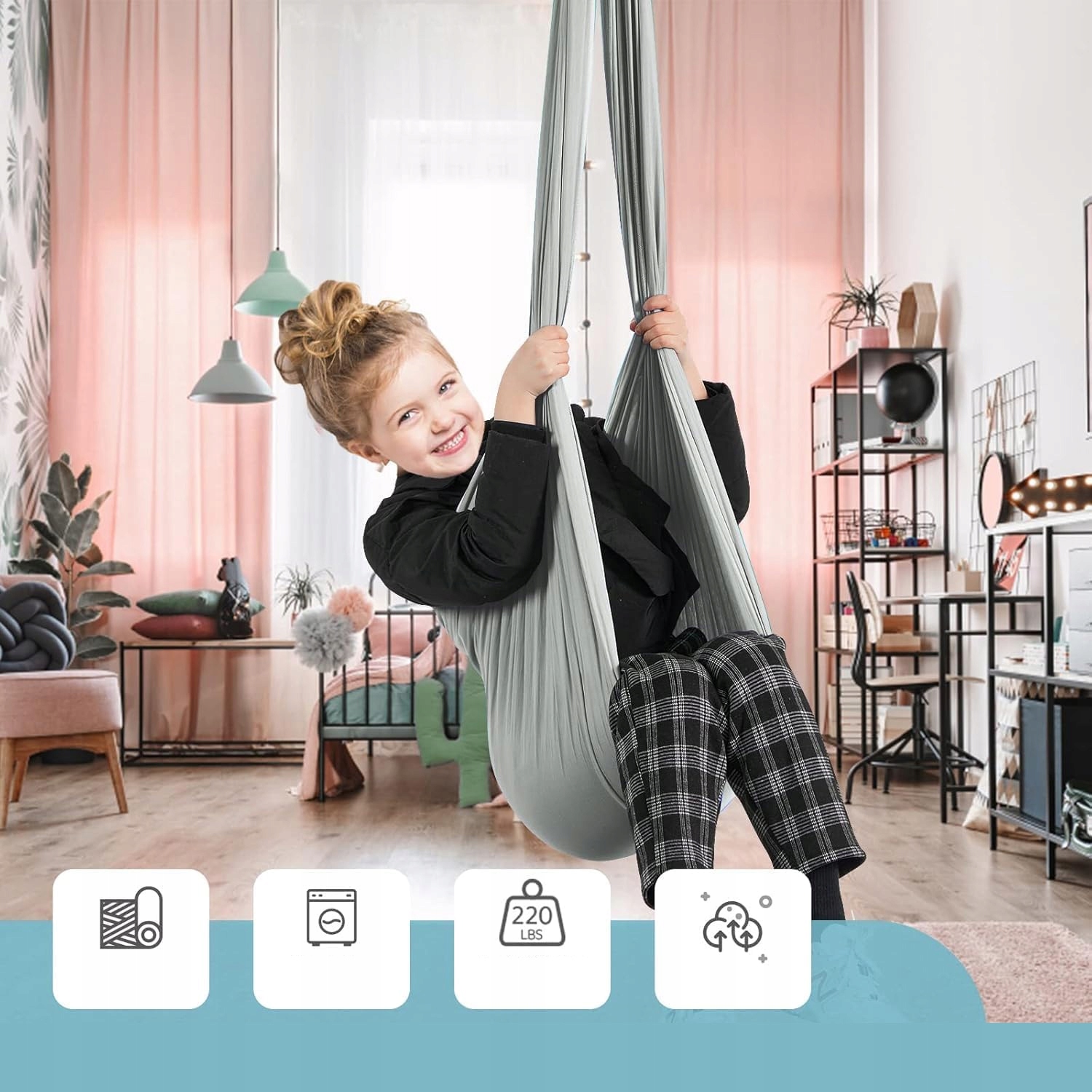 Детский гамак-качели изготовлен из 100% нейлона высокой плотности, что делает его легким и устойчивым к разрывам, а его грузоподъемность составляет до 90 кг (200 фунтов). Сверхмягкая, растягивающаяся в стороны конструкция с защитой от опрокидывания позволяет детям легче и безопаснее играть и расслабляться, когда им нужно снять стресс. Лечебные качели с тканевыми комнатными качелями дают детям множество возможностей играть на качелях, читать, кувыркаться и кружиться.