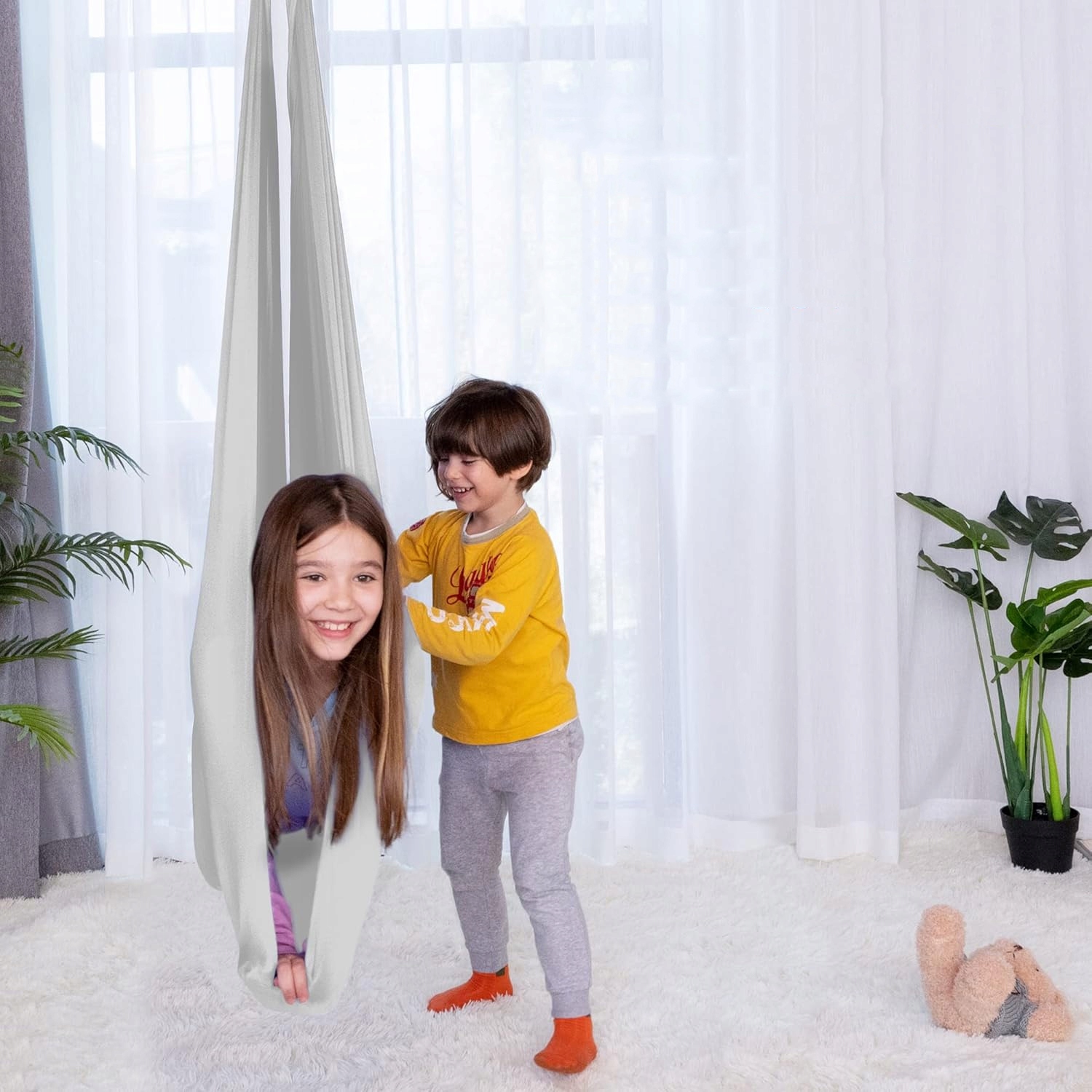 Терапевтические качели в помещении имитируют ощущение, когда вас крепко обнимают или укутывают в кокон, и специально разработаны для детей с проблемами сенсорной стимуляции. Ткань для уличной терапии для детей стимулирует кожу, тело и разум во время раскачивания, лежания, сидения, чтения и даже стояния - идеально подходит в качестве подарка для детей, мальчиков и девочек с аутизмом, ШРЛ, СДВГ и синдромом Аспергера.
